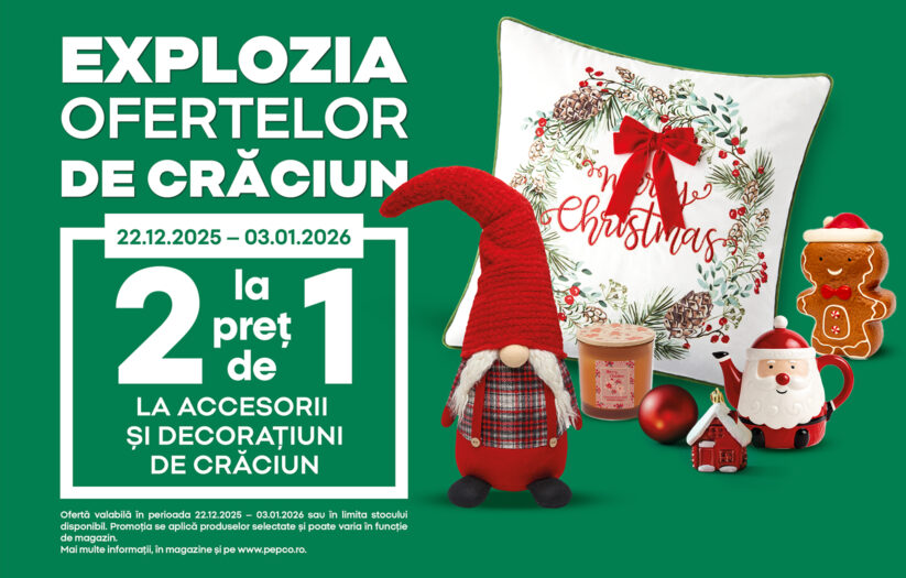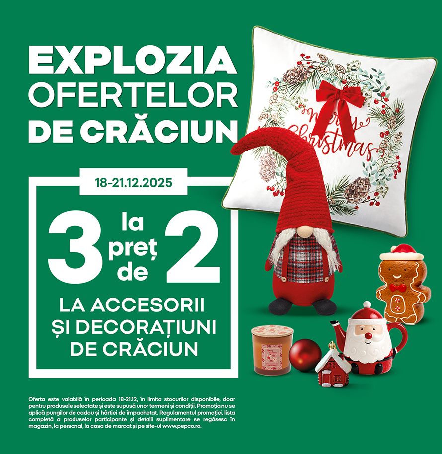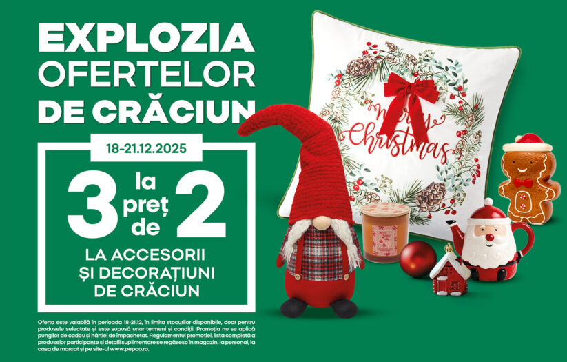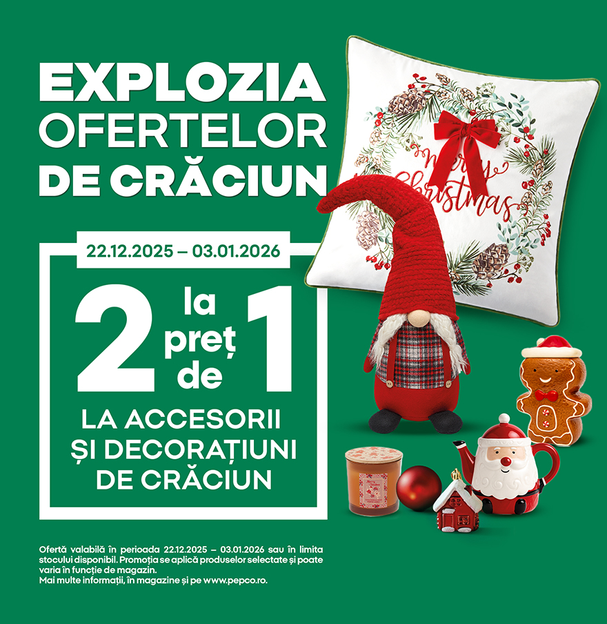 Sărbătorile încep la Pepco! Descoperă frumoase decorațiuni pentru brad, accesorii de bucătărie tematice, decorațiuni și accesorii care vor face pregătirile de sărbători și mai plăcute.