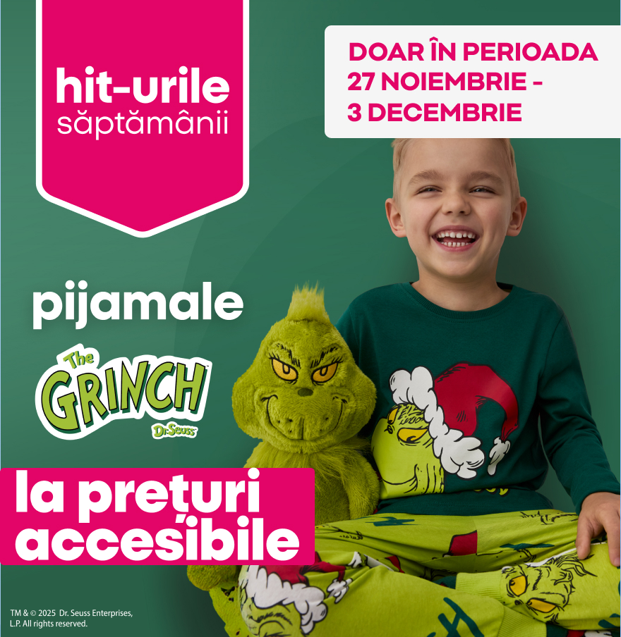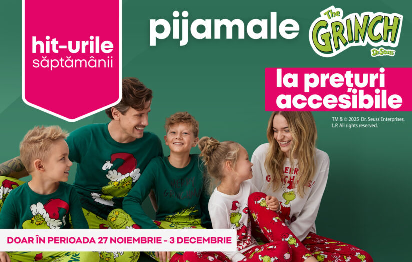 Dormi liniștit în timp ce aștepți Crăciunul! Săptămâna aceasta, la Pepco, găsești pijamale pentru întreaga familie cu modele inspirate de Grinch.