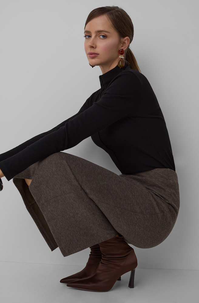 Revenirea la estetica anilor ’90 din această colecție nu este doar un tribut adus nostalgiei, ci și o reinterpretare a unei perioade în care moda însemna libertate și exprimare fără limite. Această influență se reflectă în puloverele supradimensionate, care se potrivesc perfect atât în ținutele casual, cât și alături de piese mai elegante. Pantalonii cu talie înaltă și croială largă nu doar că aduc un aer retro, dar răspund și tendințelor actuale ce pun accent pe confort și versatilitate. În plus, crop topurile, un simbol al modei anilor ’90, au fost reîmprospătate și adaptate stilului modern, oferind opțiuni diverse pentru ținute pline de personalitate.