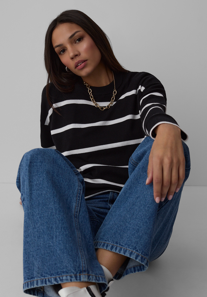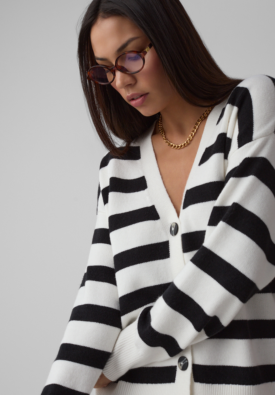 Noua colecție include și cămăși elegante, precum și pulovere cu modele clasice în dungi, atemporale. Vei alege un pulover tip pullover sau un cardigan lejer, cu nasturi decorativi? Alegerea îți aparține! Lasă-te inspirată și creează ținuta perfectă care îți pune cel mai bine în valoare stilul personal.