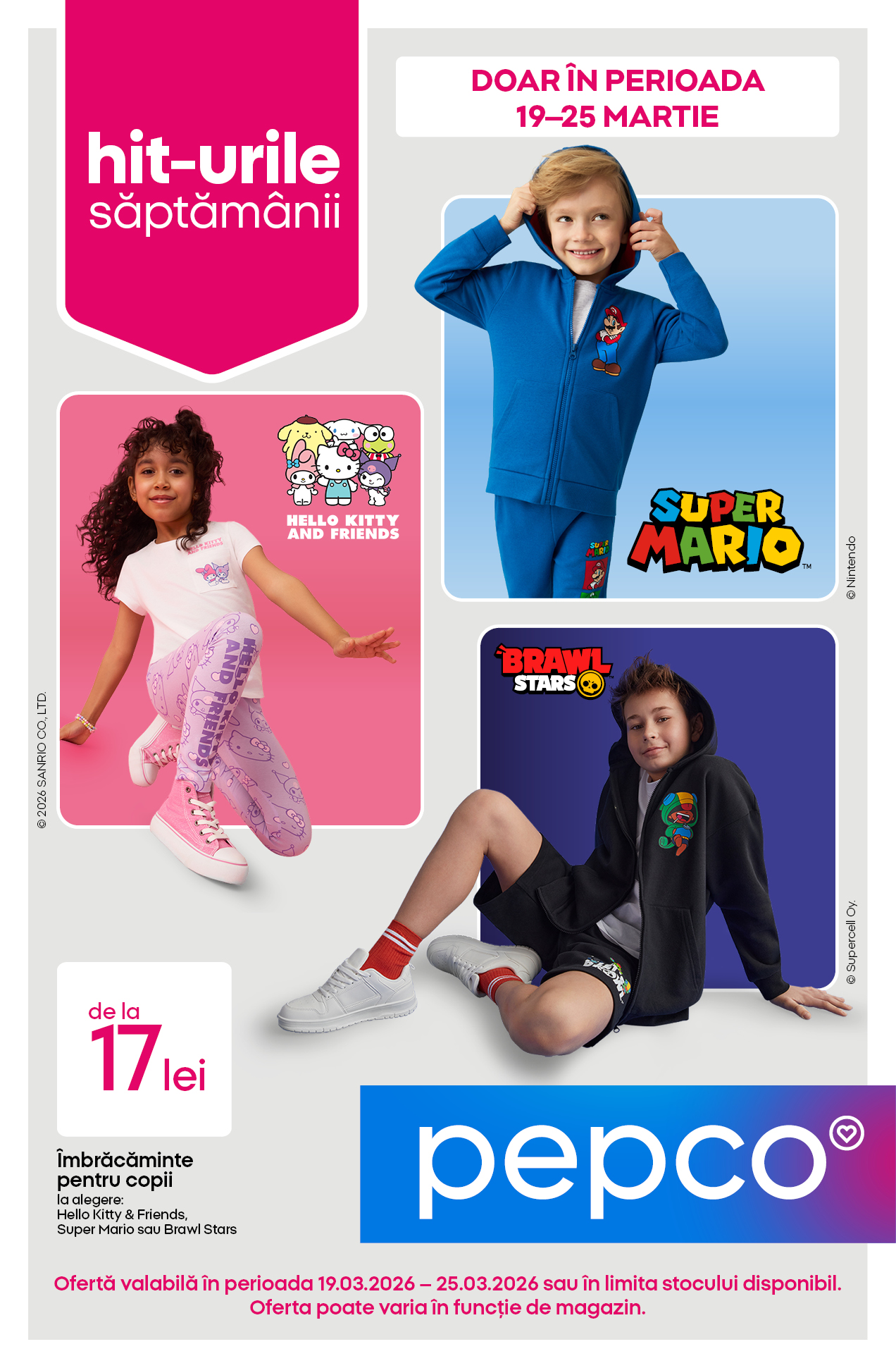 Oferta va fi disponibilă în magazinele Pepco începând cu data de 26 martie 2026 și este valabilă în limita stocului disponibil. Oferta poate varia în funcție de magazin, în ceea ce privește cantitatea și disponibilitatea sortimentului.