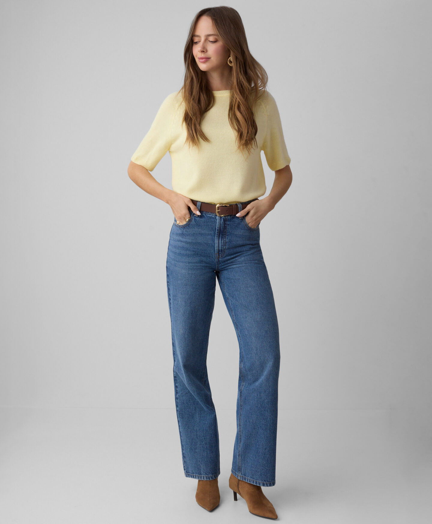 Blugii pentru femei din 100% bumbac, cu picior larg, sunt o piesă esențială indiferent de sezon. Oferă confort și libertate de mișcare, fiind potriviți pentru activități diverse. Se asortează ușor atât cu tricouri casual, cât și cu cămăși elegante.