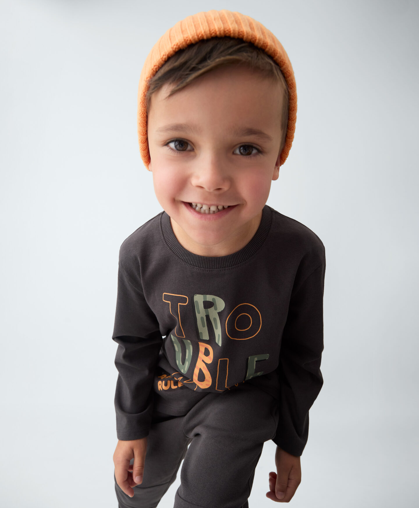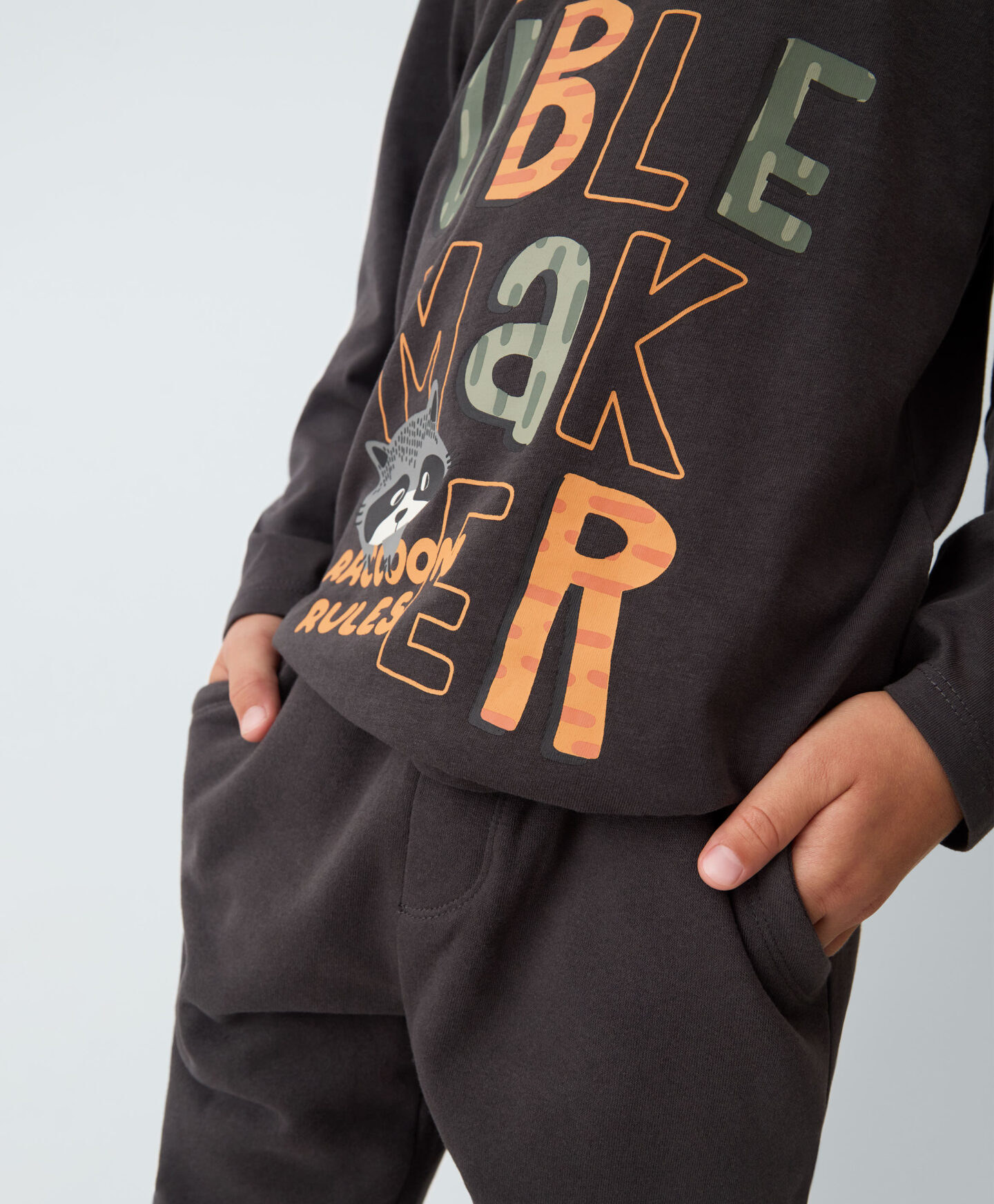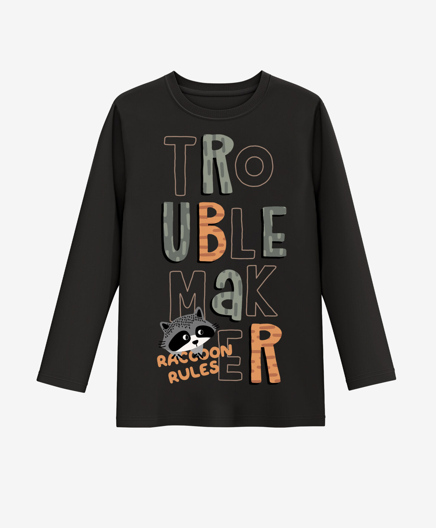 Bluza cu mâneci lungi pentru băieți, din 100% bumbac, este perfectă pentru zilele mai răcoroase. Culorile închise completează perfect aura de toamnă, iar imprimeul de pe față adaugă personalitate. Bluza se potrivește atât cu jeanși, cât și cu pantaloni sport. Materialul moale și plăcut pe piele îi va asigura copilului tău confortul necesar.