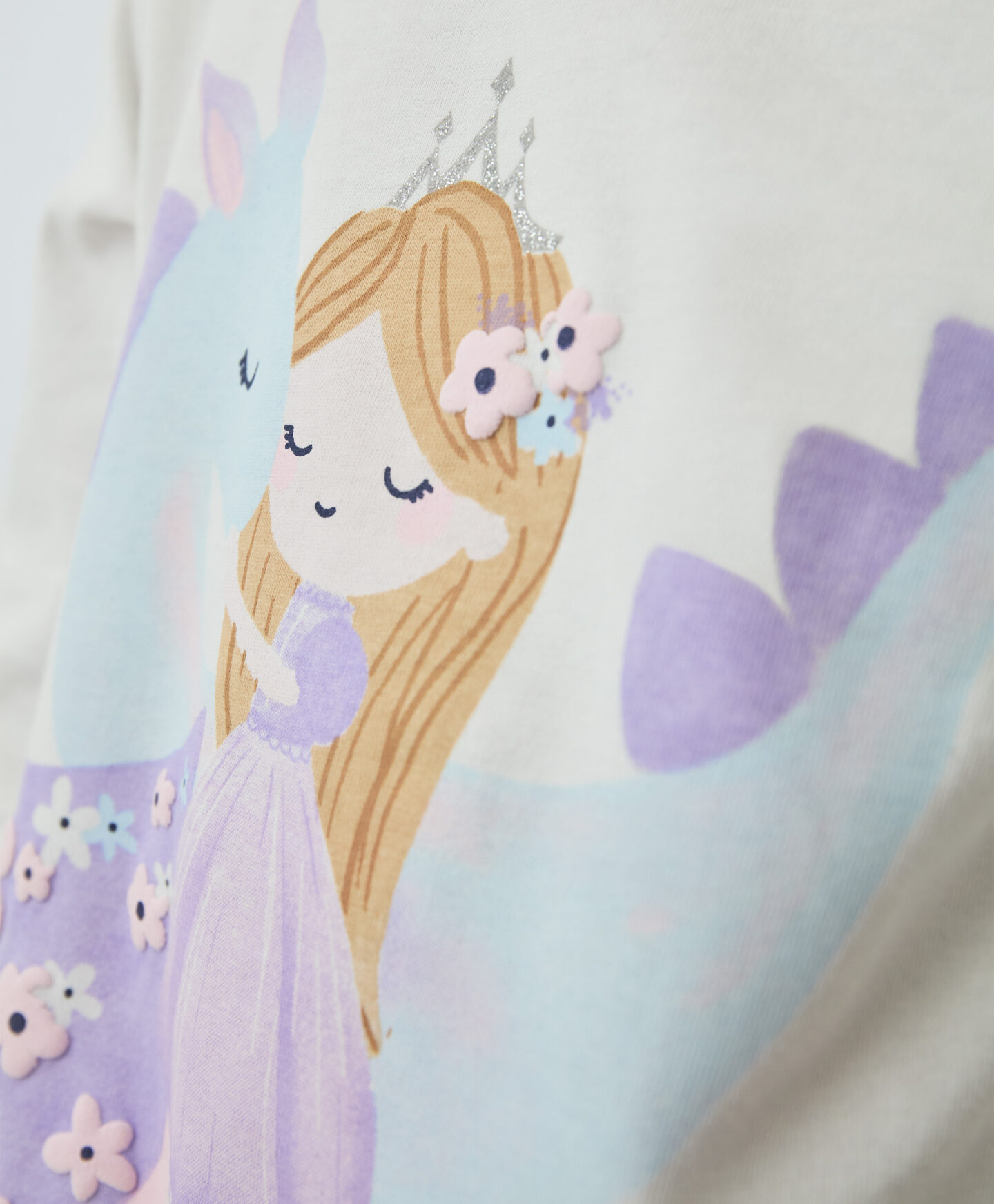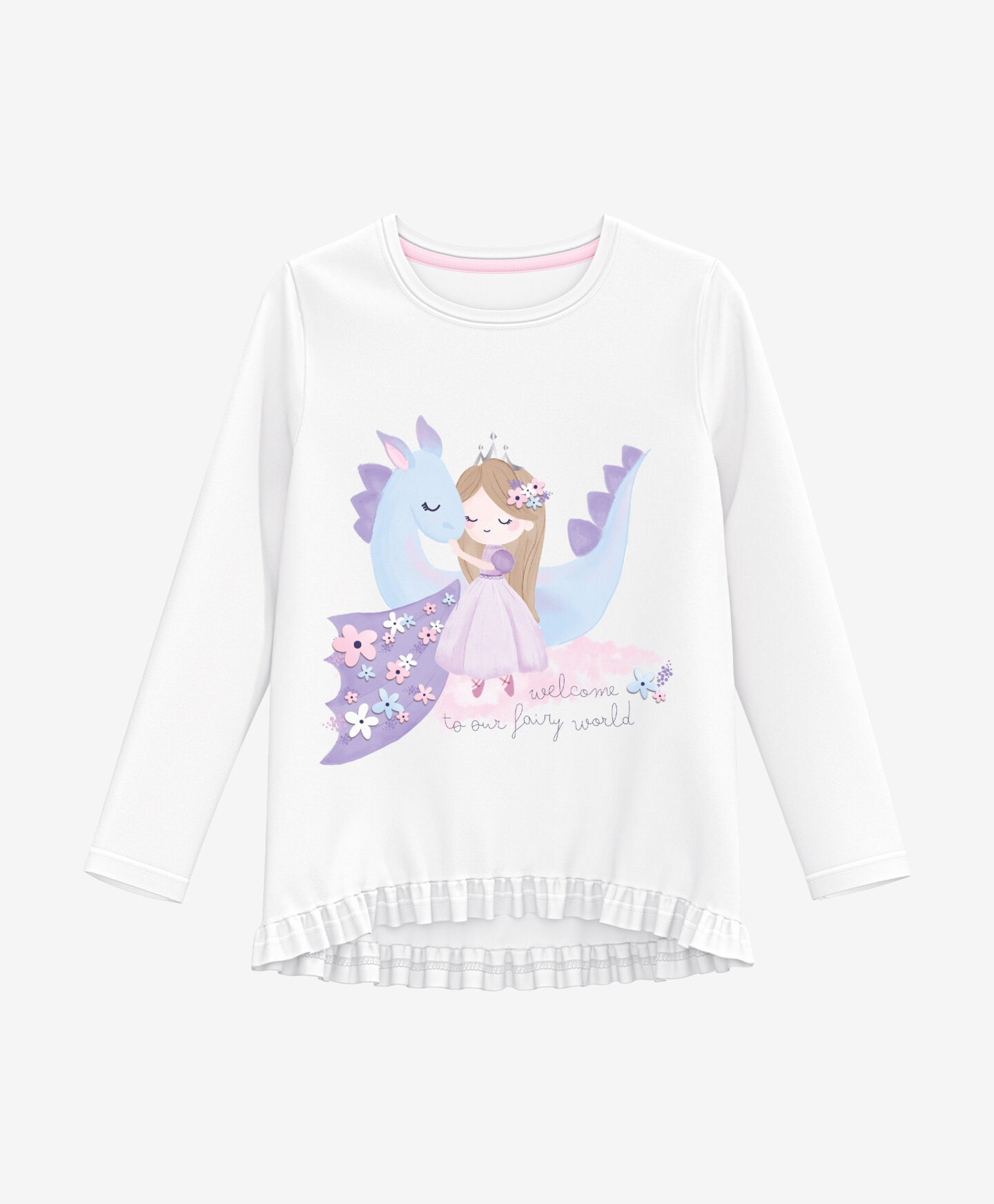 Bluza 100% bumbac pentru fete, cu volănașe, este moale, ușoară și respirabilă. Este plăcută la atingere și învăluie delicat pielea, iar mânecile lungi oferă căldură în zilele răcoroase de toamnă. Bluza se potrivește perfect cu colanții căptușiți din colecție.
