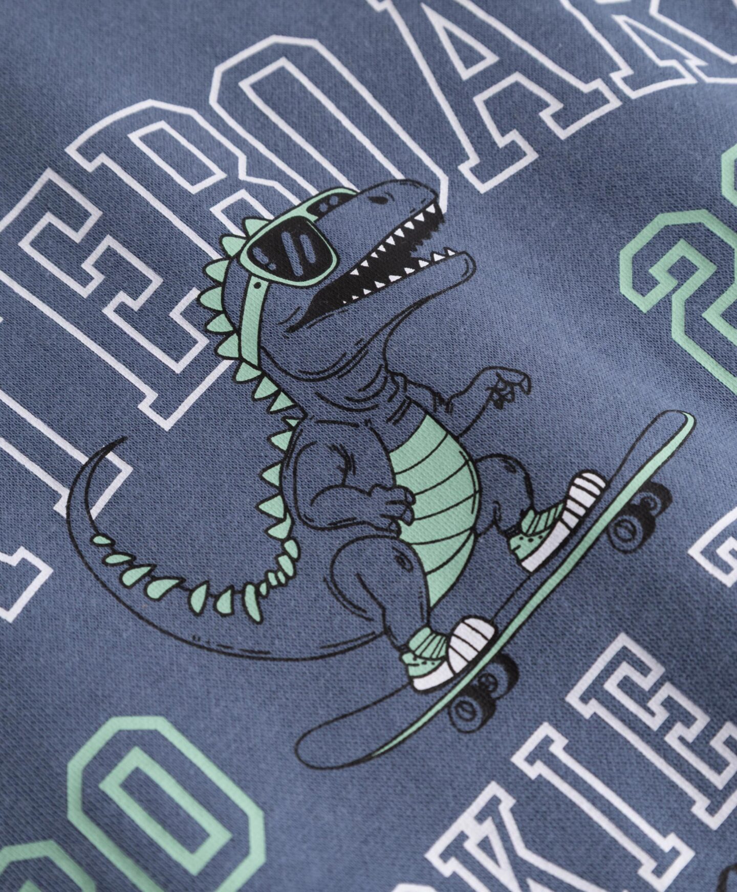 Bluza pentru băieți, realizat dintr-un material cu conținut ridicat de bumbac, este o alegere excelentă pentru purtare zilnică. Este călduros și moale la atingere. Imprimeul cu dinozaur din față îi va încânta pe cei mici. Croiala clasică oferă confort și libertate de mișcare. Se potrivește atât cu blugi, cât și cu pantaloni de trening.