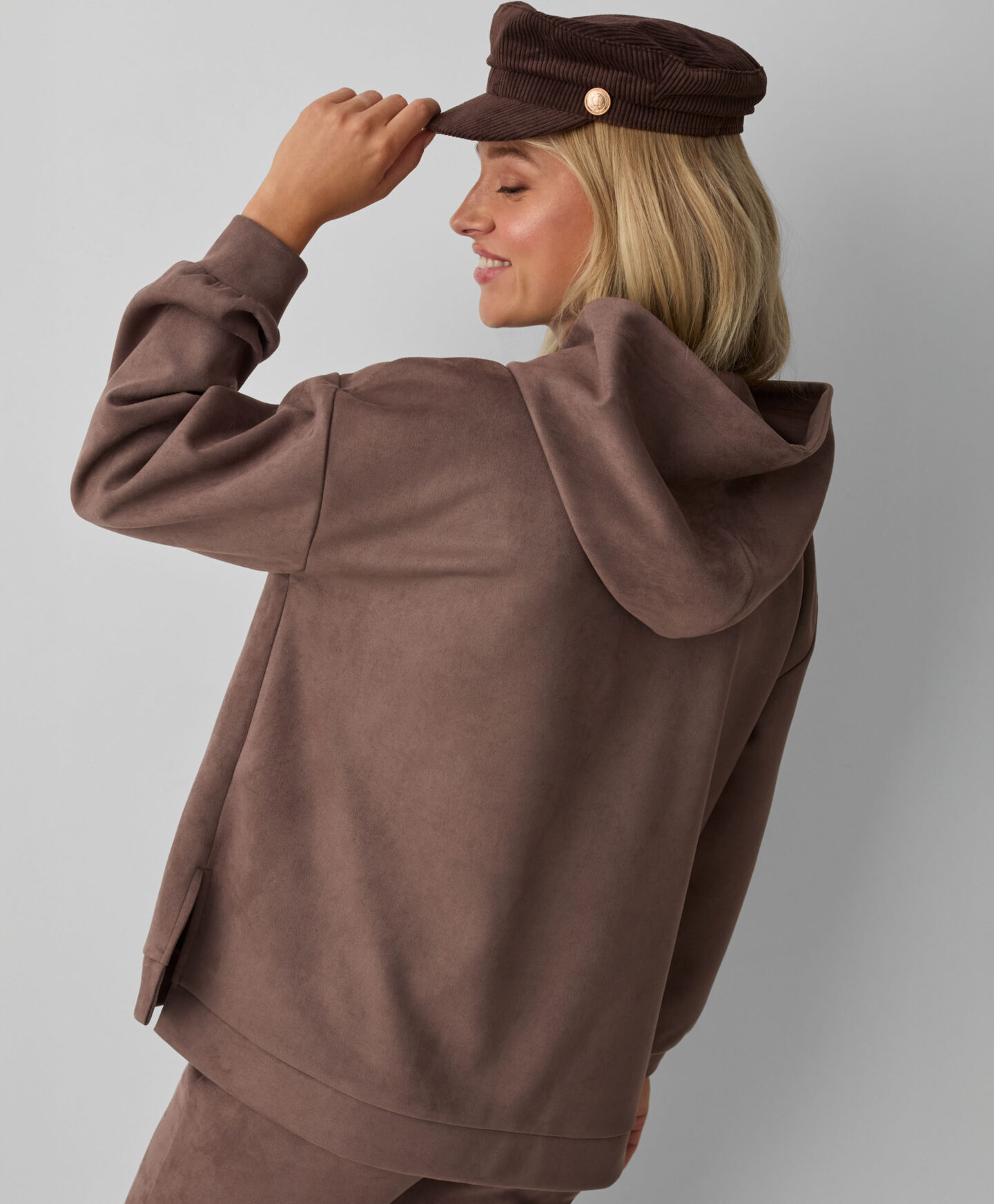 Bluza pentru femei din velur cu glugă îți oferă confort și căldură în zilele reci. Este nu doar comodă, ci și elegantă. Materialul moale, croiala atent gândită și nuanța feminină o vor face bluza ta preferată în acest sezon! Se potrivește perfect cu pantalonii din velur din aceeași colecție. O găsești în două variante de culoare.