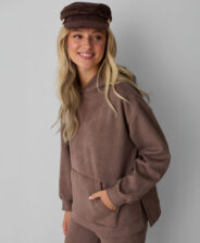 Bluza pentru femei din velur cu glugă îți oferă confort și căldură în zilele reci. Este nu doar comodă, ci și elegantă. Materialul moale, croiala atent gândită și nuanța feminină o vor face bluza ta preferată în acest sezon! Se potrivește perfect cu pantalonii din velur din aceeași colecție. O găsești în două variante de culoare.