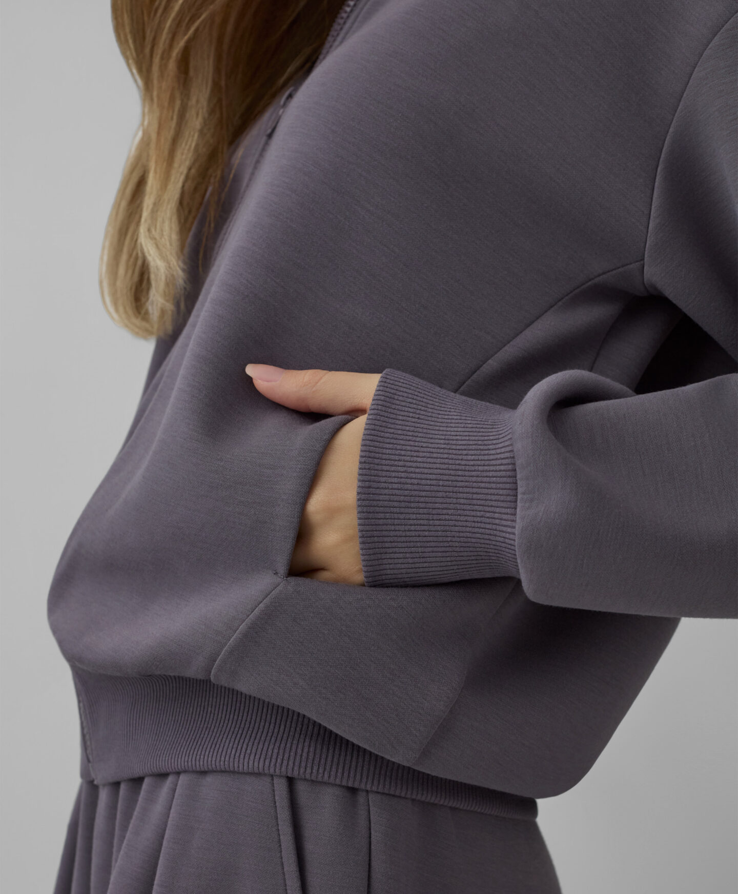 Hanoracul maro pentru femei, cu fermoar, se potrivește perfect cu pantalonii din aceeași colecție. Este o piesă vestimentară stilată și practică, potrivită pentru orice situație. Materialul moale oferă confort pe tot parcursul zilei, iar închiderea cu fermoar permite îmbrăcarea rapidă și ușoară.