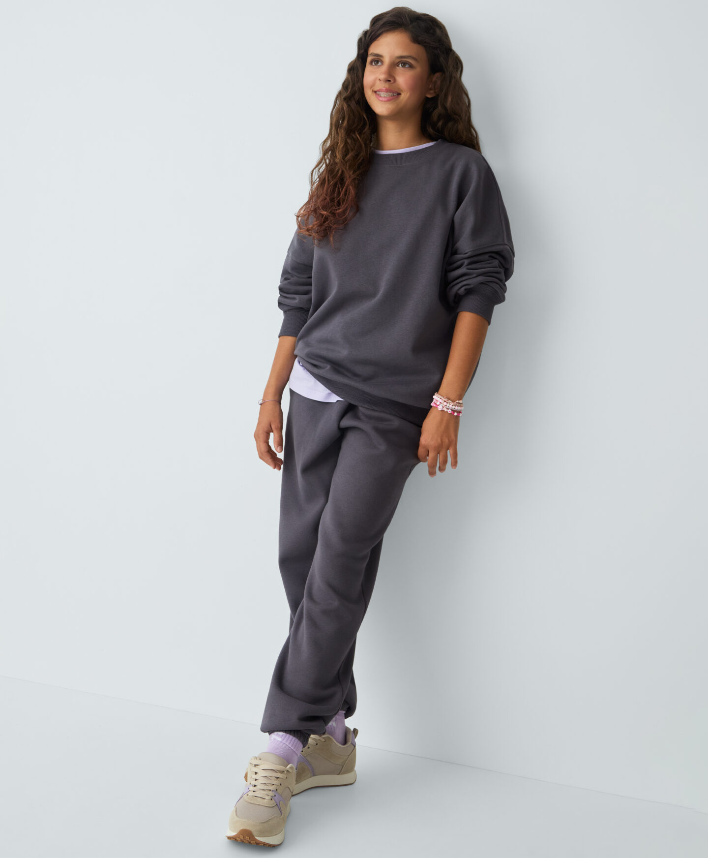 Bluza pentru fete, din bumbac, cu croială oversize modernă, este alegerea perfectă dacă iubești confortul în variantă stilată. Este moale, călduroasă și oferă libertate de mișcare pe tot parcursul zilei. Este ideală pentru școală, sport sau weekenduri în aer liber. O poți asorta cu pantalonii sport disponibili în aceeași culoare.