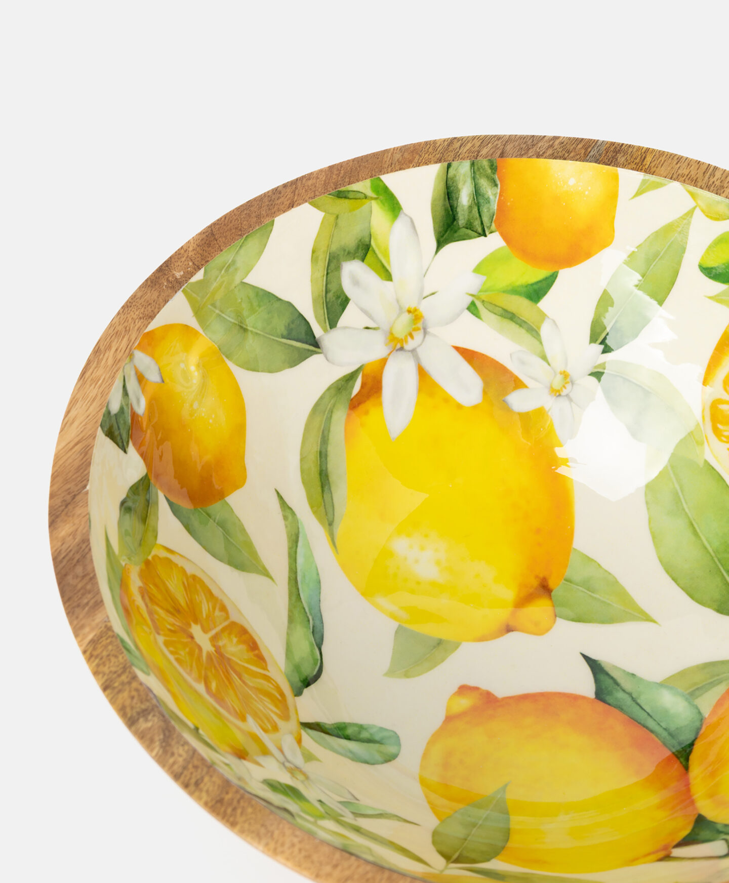 Bolul de servire din lemn de mango, cu model de lămâi, combină materialul natural cu un design vesel. Este ideal pentru salate, fructe sau servire. Durabil și ușor de curățat, este perfect pentru utilizarea zilnică.