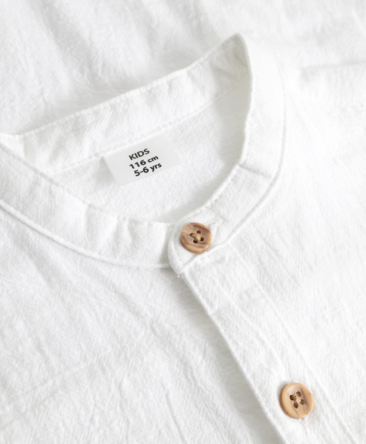 Cămașa albă pentru băieți, din 100% bumbac, este ideală pentru reuniuni de familie. Materialul respirabil oferă confort, iar nasturii contrastanți și gulerul scurt tip tunică îi conferă un aer modern. Mânecile scurte o fac potrivită pentru zilele călduroase.