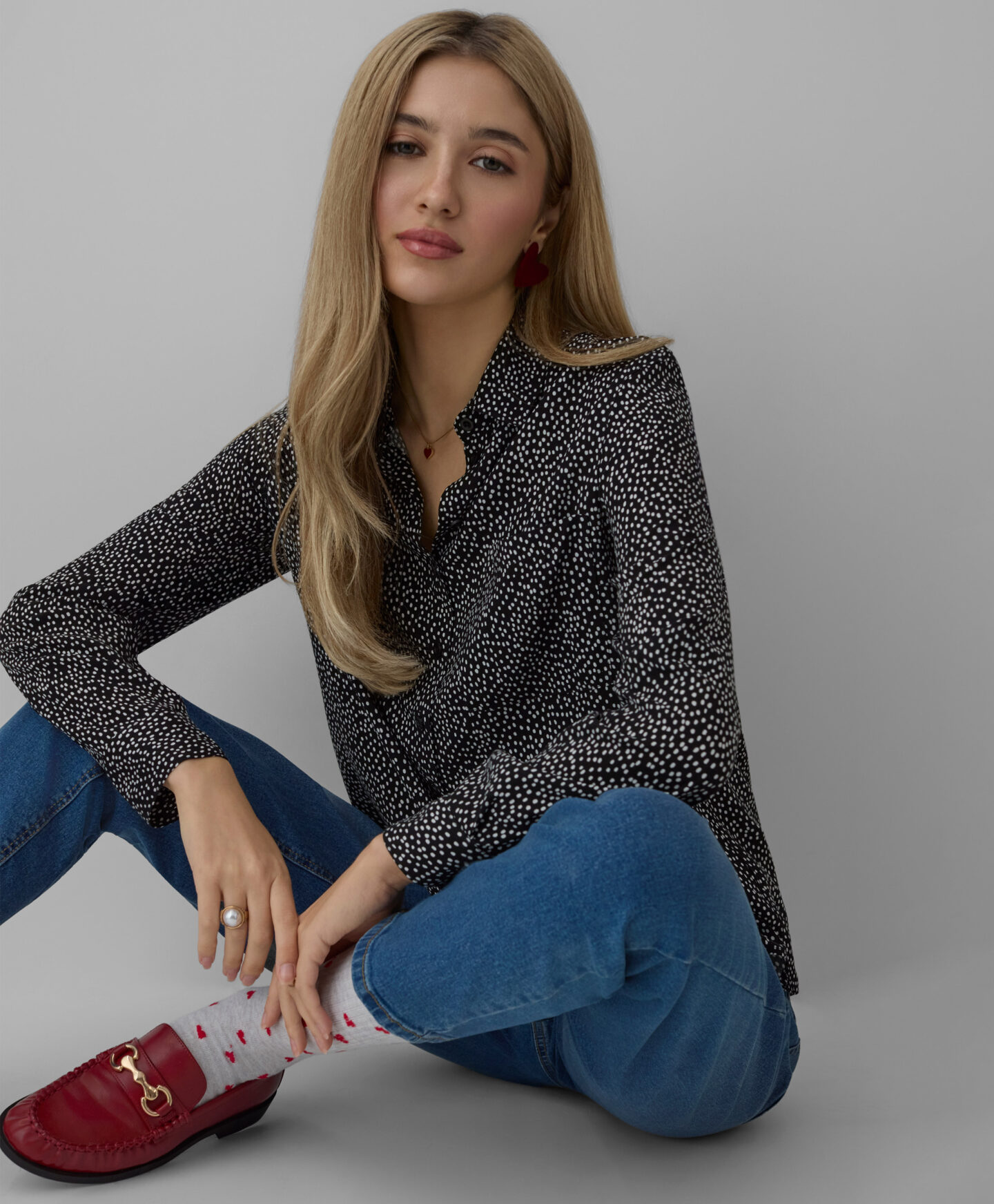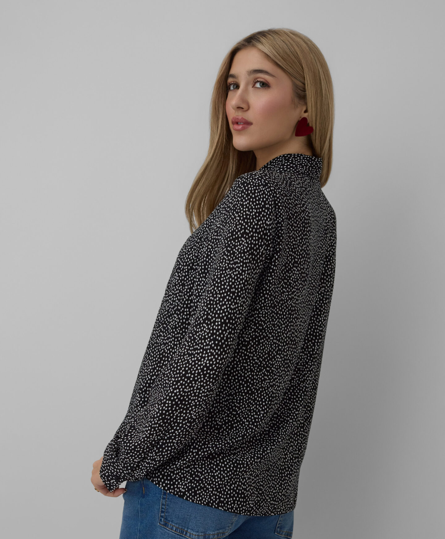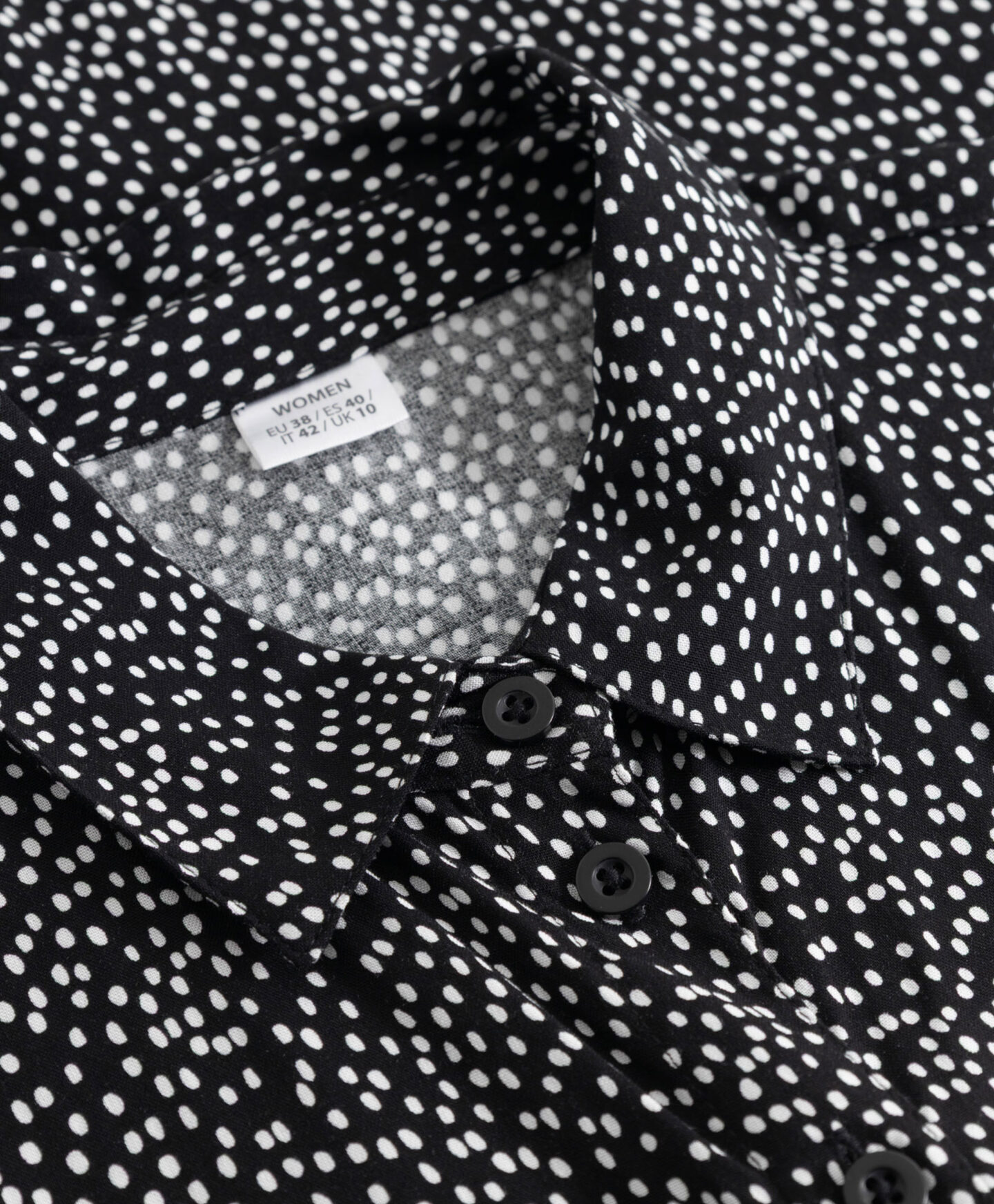 Cămașa pentru femei din viscoză, cu model, îmbină eleganța cu confortul. Materialul moale și ușor asigură un confort deosebit la purtare, fiind potrivit pentru orice ocazie. Țesătura cu imprimeu îi conferă un caracter unic și permite exprimarea stilului personal.