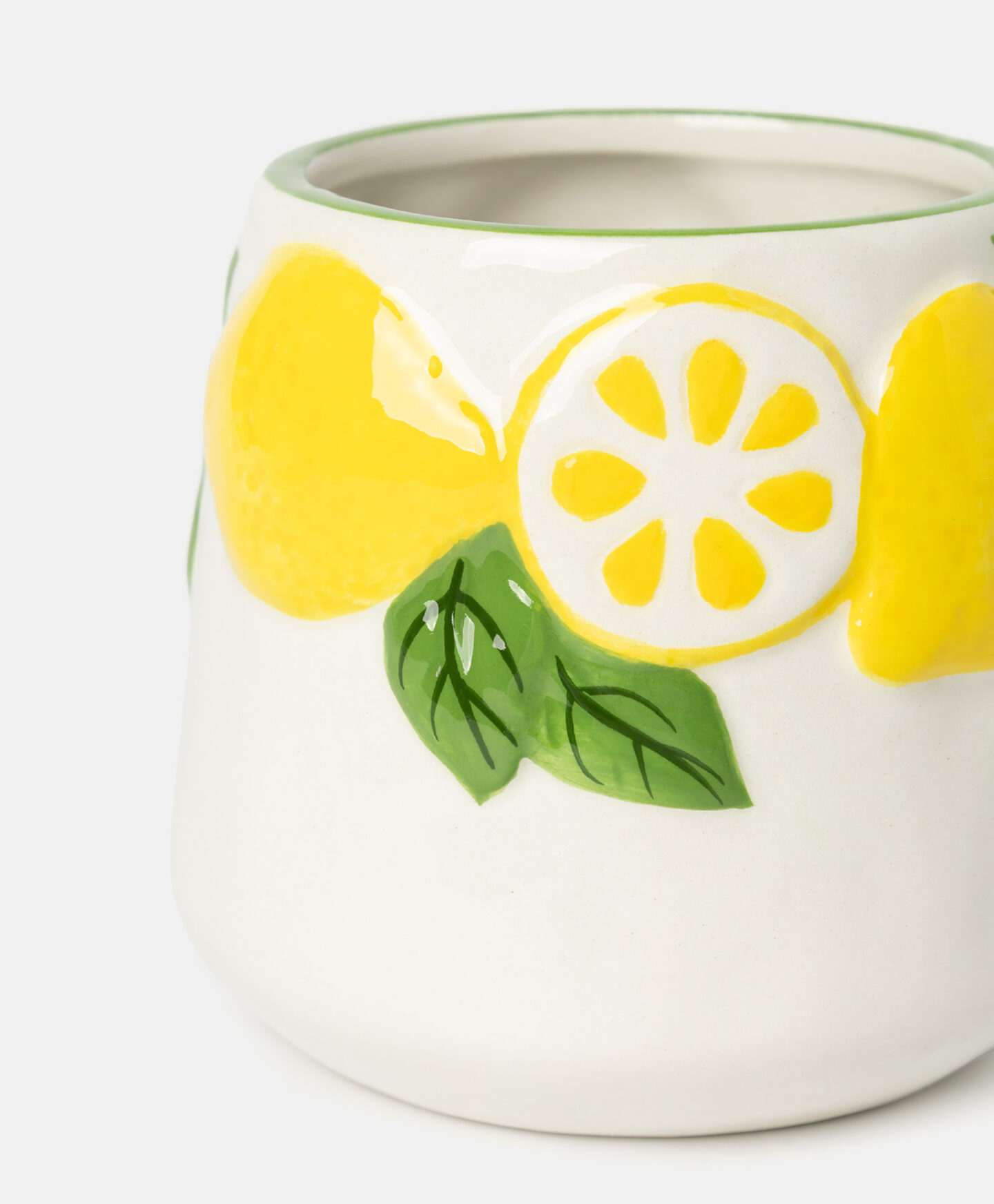 Cana cu model de lămâie în relief va aduce prospețime și culoare colecției tale de veselă. Este perfectă pentru a savura cafeaua sau ceaiul preferat. Designul suculent va face momentele petrecute împreună și mai plăcute!
