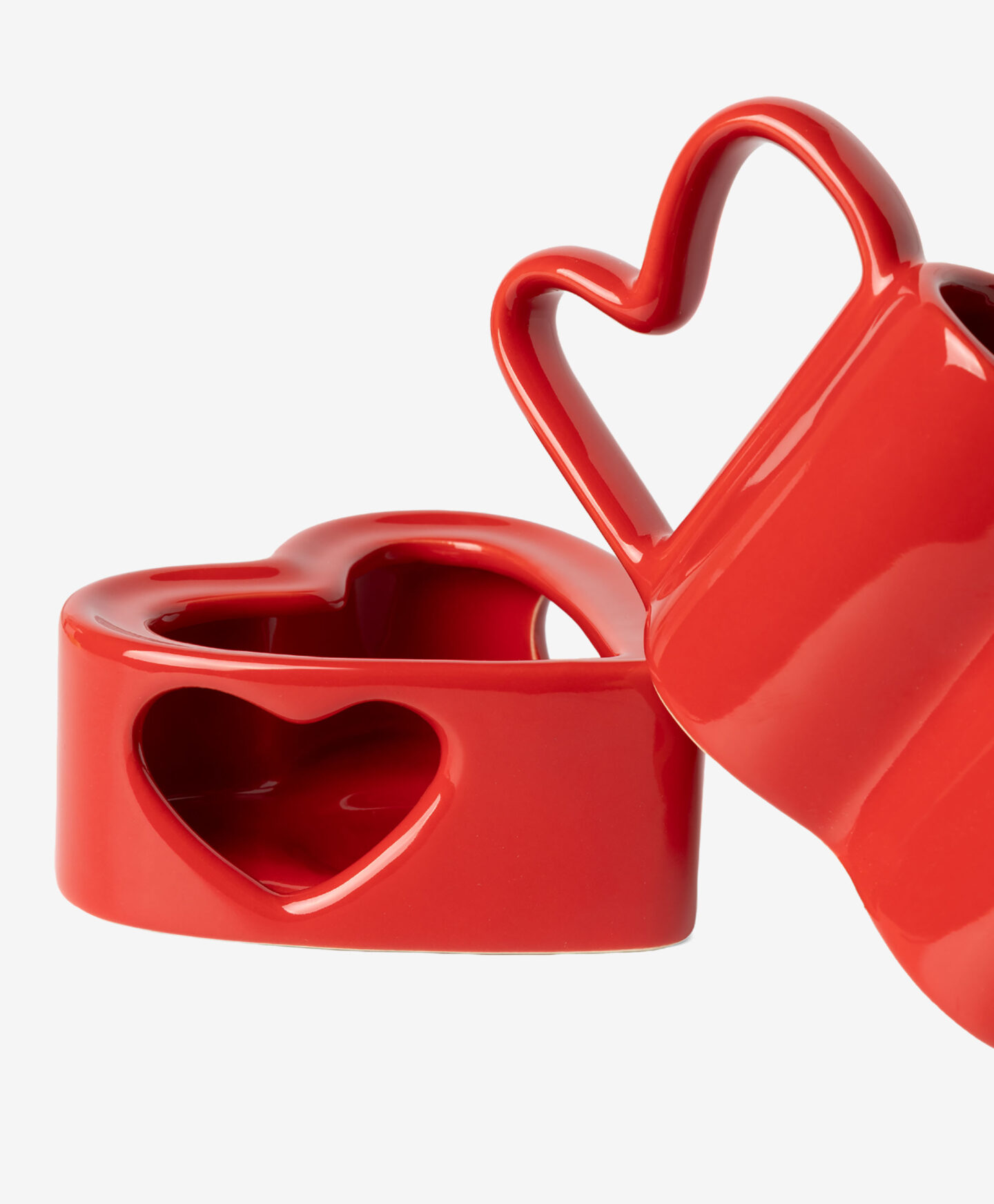Cană roșie cu inimioare și efect holo are un design romantic perfect pentru Valentine’s Day, cafea sau ceai, fiind realizată din porțelan durabil, rezistent la utilizare zilnică și ușor de curățat; disponibilă în două culori.