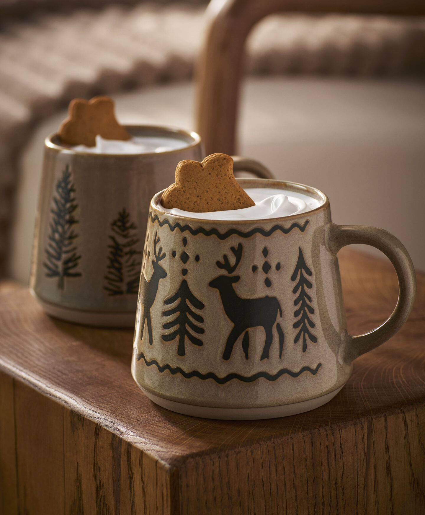 Cana din ceramică cu model de ren și mâner este realizată din ceramică rezistentă, fiind durabilă și practică pentru utilizarea zilnică. Este ideală pentru cafeaua de dimineață, ceai sau ciocolată caldă. În ofertă sunt disponibile două modele.