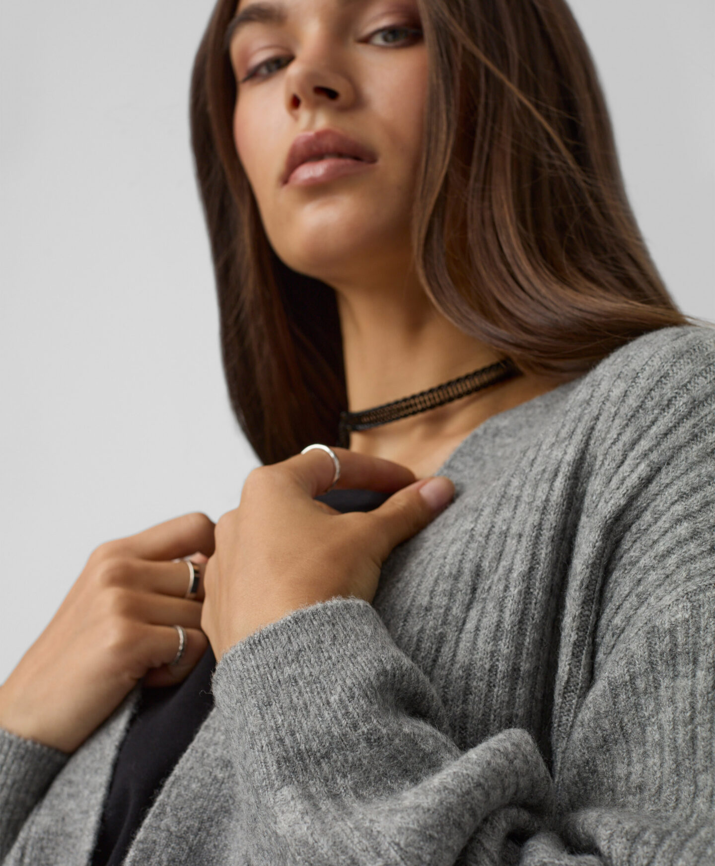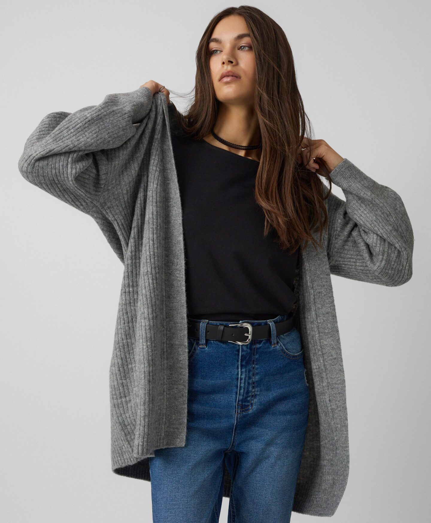 Cardiganul lung gri pentru femei este perfect pentru orice ocazie. Îți oferă căldură și un aspect elegant în zilele mai reci, asortându-se minunat cu diverse piese din garderobă, de la rochii la pantaloni. Croiala lejeră se potrivește oricărei siluete, asigurând confort și libertate de mișcare.