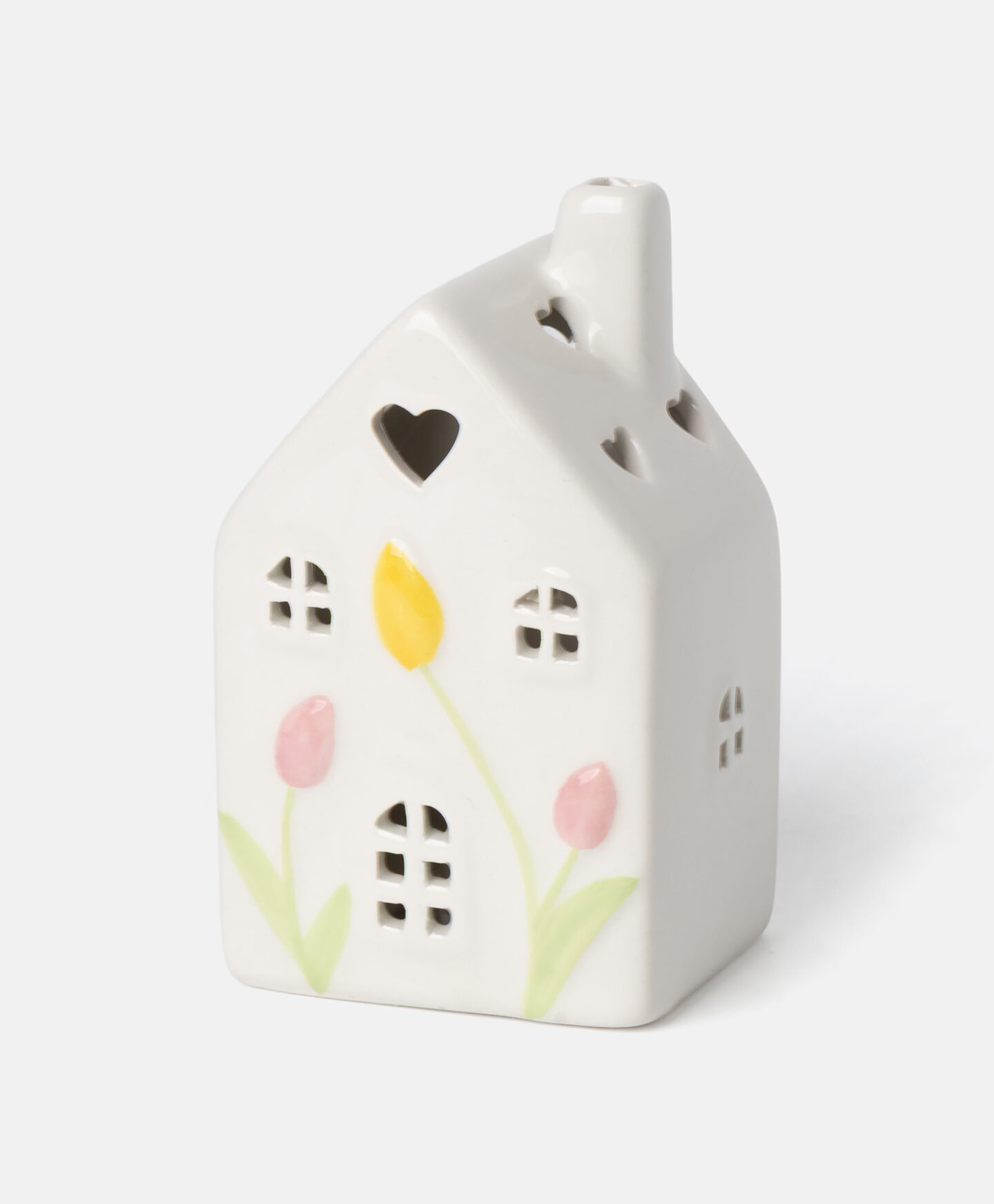 Căsuța albă LED cu model floral este o decorațiune plină de atmosferă, care oferă o lumină blândă și discretă. Culorile pastelate și motivul de primăvară aduc prospețime și lejeritate oricărui interior. Arată minunat pe blatul din bucătărie, pe un raft în living sau lângă patul copilului. Sunt disponibile diverse modele.