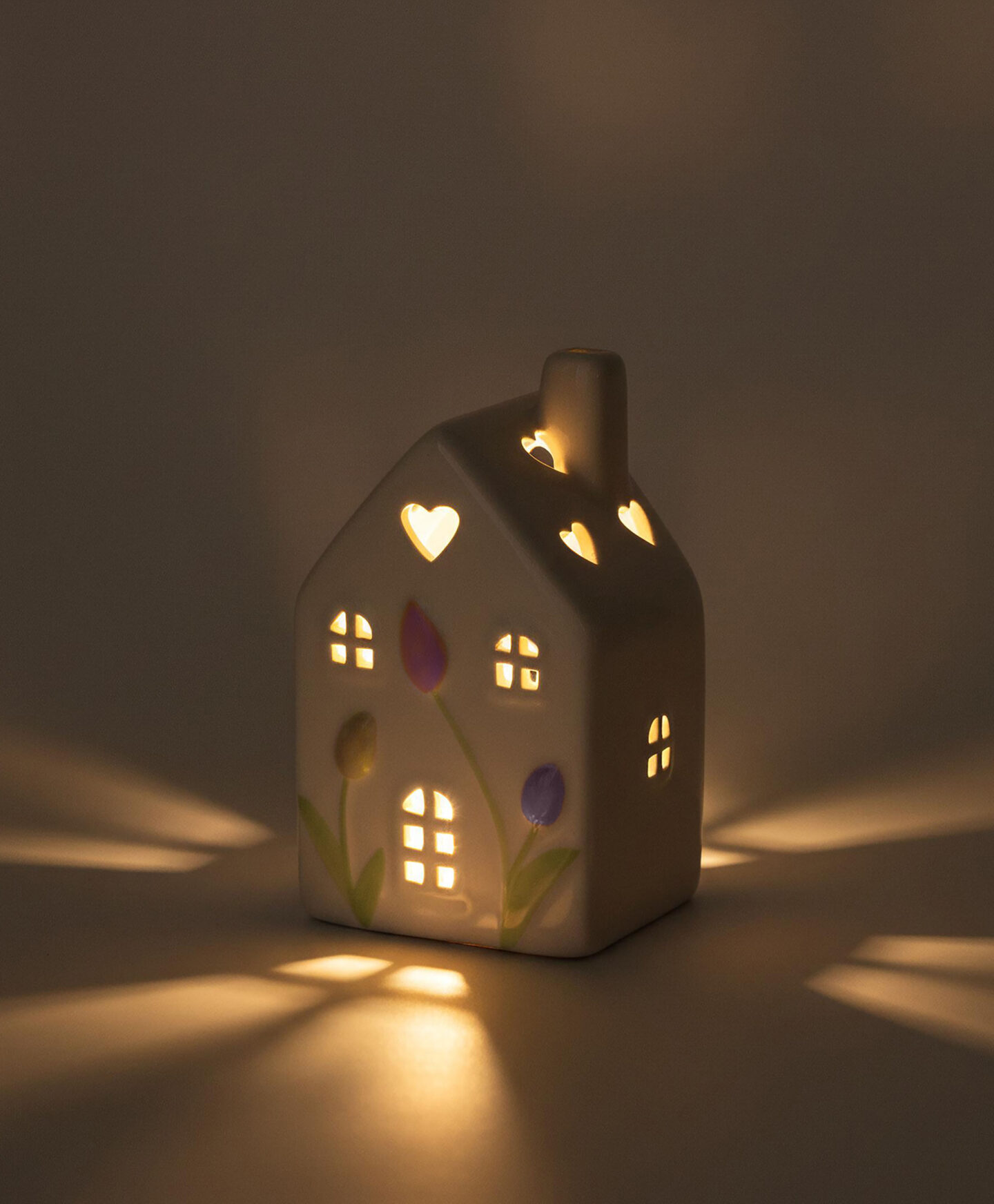 Căsuța verde LED cu model floral este o decorațiune plină de atmosferă, care oferă o lumină blândă și discretă. Culorile pastelate și motivul de primăvară aduc prospețime și lejeritate oricărui interior. Arată minunat pe blatul din bucătărie, pe un raft în living sau lângă patul copilului. Sunt disponibile diverse modele.