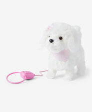 Cățelul interactiv cu lesă alb îți permite să te bucuri de plimbări pline de voie bună. Merge și latră, iar blănița moale îl transformă în companionul perfect pentru joaca zilnică.
