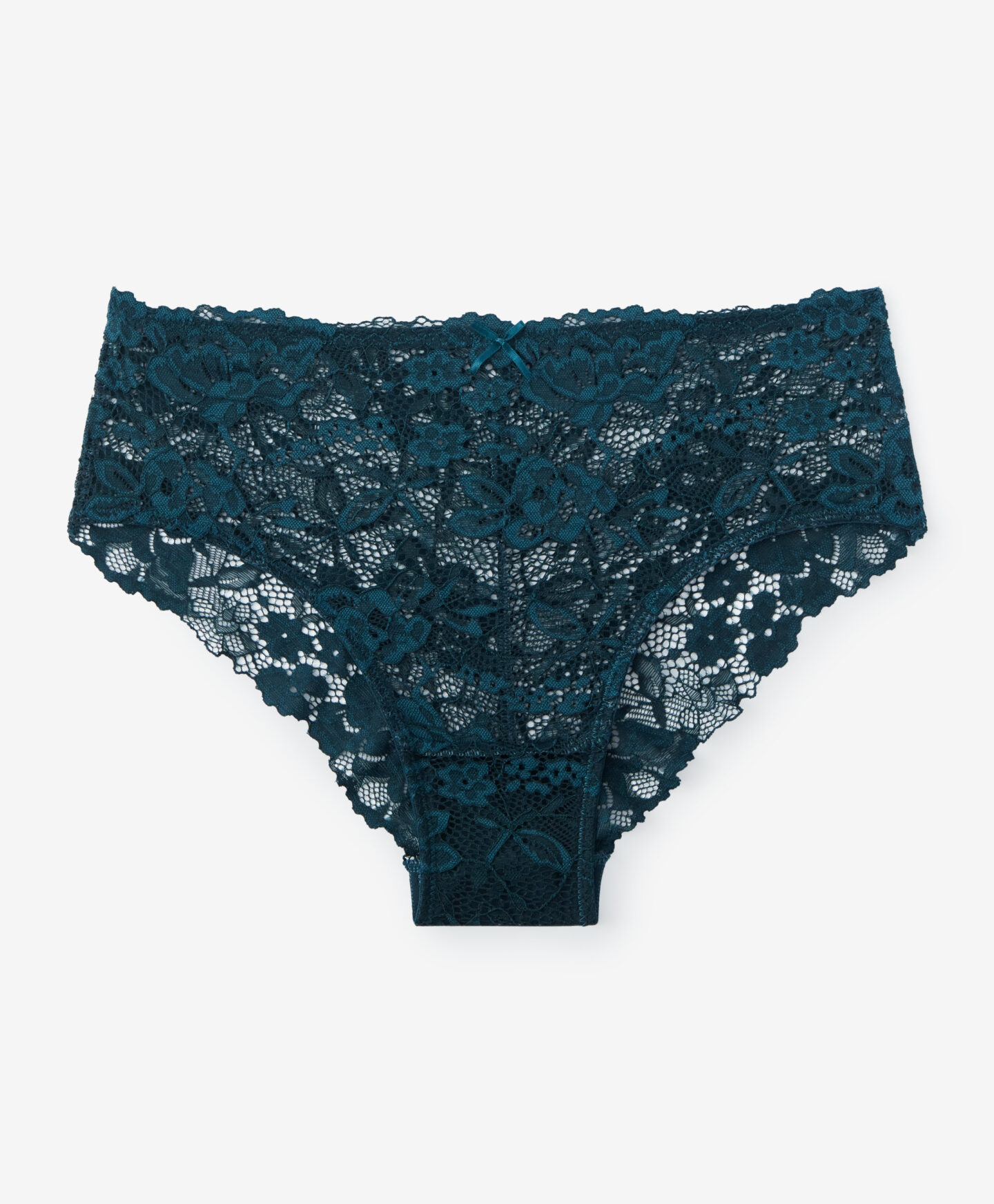 Chiloții cu dantelă tip bikini, cu bază din bumbac, îți oferă confort și stil rafinat. Dantela senzuală îți învăluie delicat corpul, adăugând un plus de eleganță oricărei ținute. Baza din bumbac îți asigură igienă și confort zilnic. Sunt alegerea ideală pentru hainele mulate.