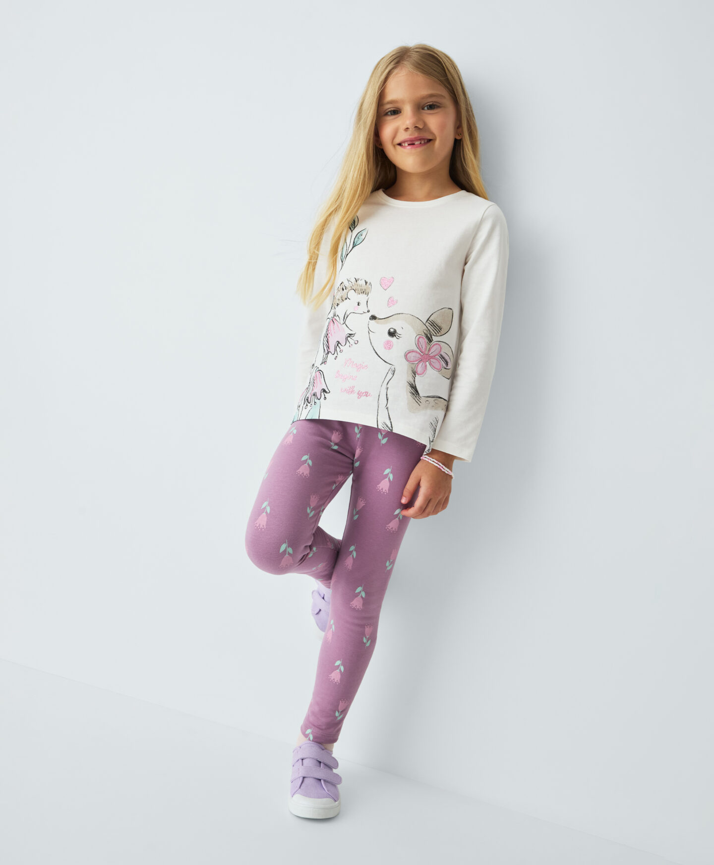 Colanții pentru fete, cu imprimeu floral, sunt practici și drăguți. Căptușeala îi face perfecți pentru primele zile reci de toamnă. Îi poți purta cu un tricou, hanorac, dar și alături de o fustă sau o rochie. Datorită bumbacului și elastanului, sunt moi, comozi și ușor de îmbrăcat.