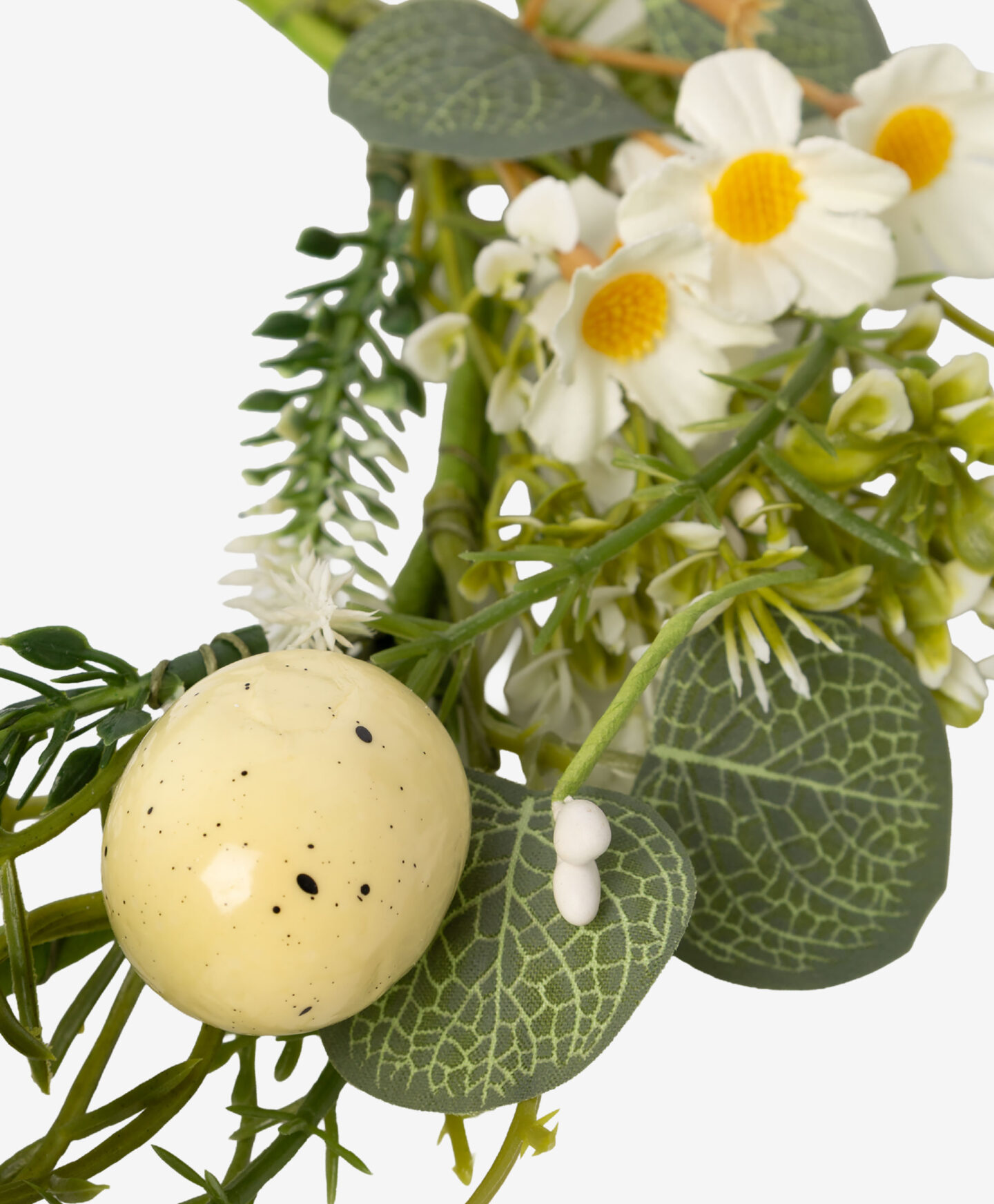 Coronița pascală cu flori albe este perfectă ca decorațiune pentru ușă, ca accesoriu frumos pentru living sau birou ori ca element decorativ pentru petreceri și evenimente de Paște. O poți folosi și pentru a crea un aranjament de primăvară cu lumânări parfumate și o vază de designer. Sunt disponibile mai multe modele.