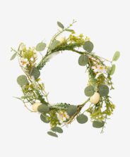 Coronița pascală cu flori albe este perfectă ca decorațiune pentru ușă, ca accesoriu frumos pentru living sau birou ori ca element decorativ pentru petreceri și evenimente de Paște. O poți folosi și pentru a crea un aranjament de primăvară cu lumânări parfumate și o vază de designer. Sunt disponibile mai multe modele.