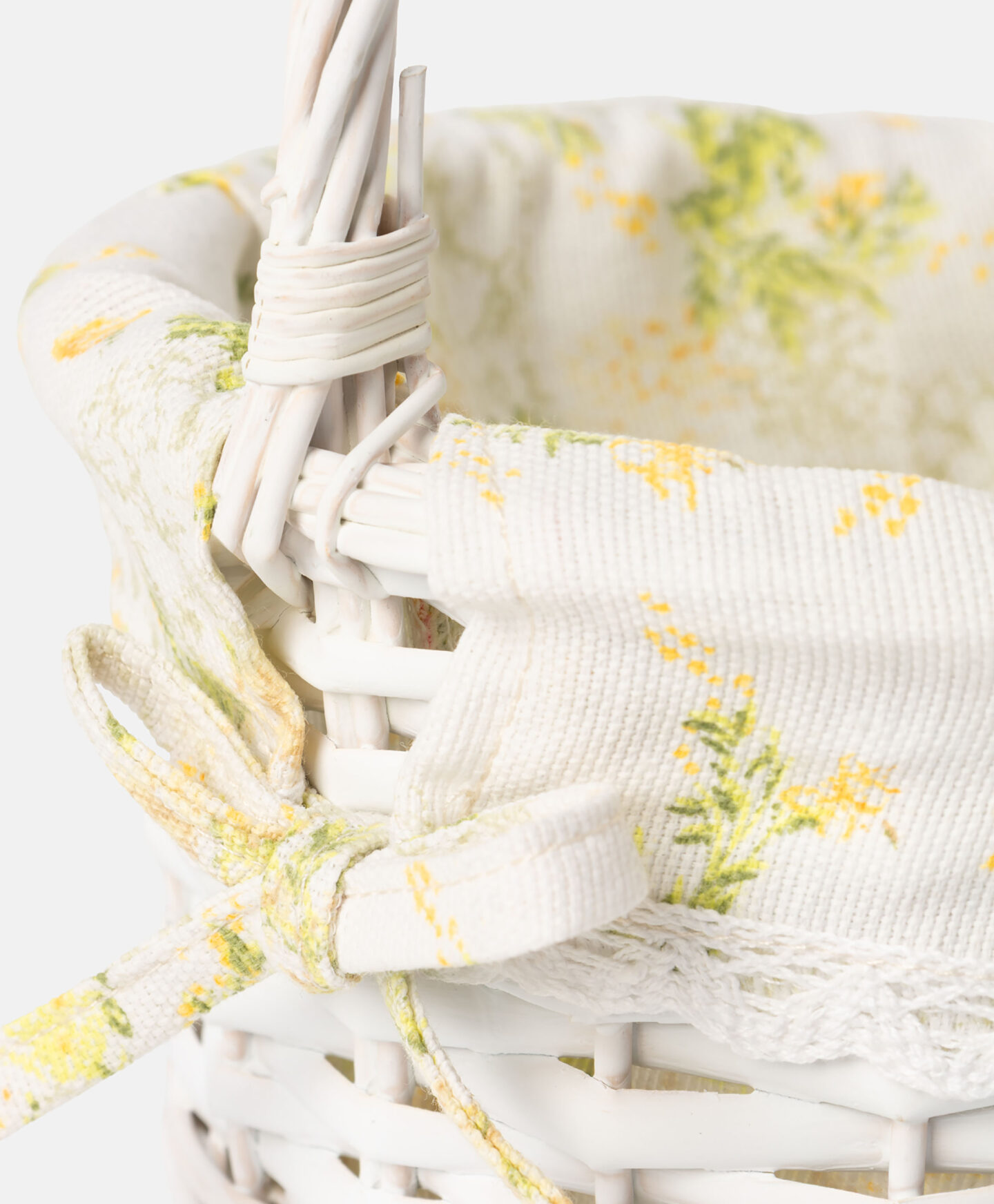 Coșul cu căptușeală florală este perfect pentru cei care iubesc tradițiile de Paște. Este ideal pentru realizarea decorațiunilor pascale, dar și ca element decorativ în locuință. Poți așeza în el flori și ouă de Paște, spre bucuria familiei și a invitaților. Sunt disponibile două modele.