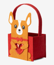 Coșul din fetru cu cățel este un ambalaj adorabil pentru cadouri de Valentine’s Day precum ciocolată, lumânare parfumată, bijuterii sau mici surprize; este decorativ și disponibil în trei modele.