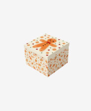 Cutia de carton bej este decorată cu un model festiv care îi adaugă eleganță. Este perfectă pentru ambalarea biscuiților, a dulciurilor sau a micilor cadouri, creând un ansamblu rafinat. Un astfel de ambalaj evidențiază unicitatea darului și îl face și mai plăcut.