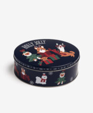 Cutia rotundă se remarcă prin culoarea sa bleumarin intens și motivul său vesel de Crăciun. Este ideală pentru a depozita dulciuri, mici cadouri sau pentru a fi folosită ca ambalaj de dar. Cu ea, chiar și un gest mic capătă o notă magică. Sunt disponibile mai multe modele.