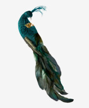 Decorațiunea mare în formă de păun turcoaz este un accent spectaculos care transformă aspectul bradului de Crăciun. Penele lungi, irizate în culori profunde, adaugă un caracter deosebit și elegant aranjamentelor. Este o piesă care atrage atenția și aduce o notă exotică și festivă în interior.