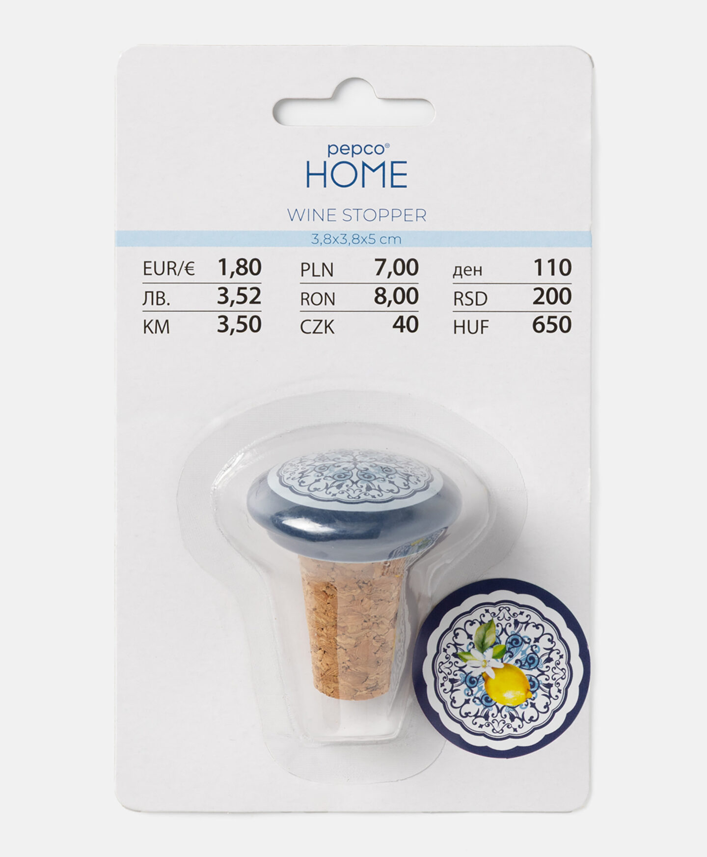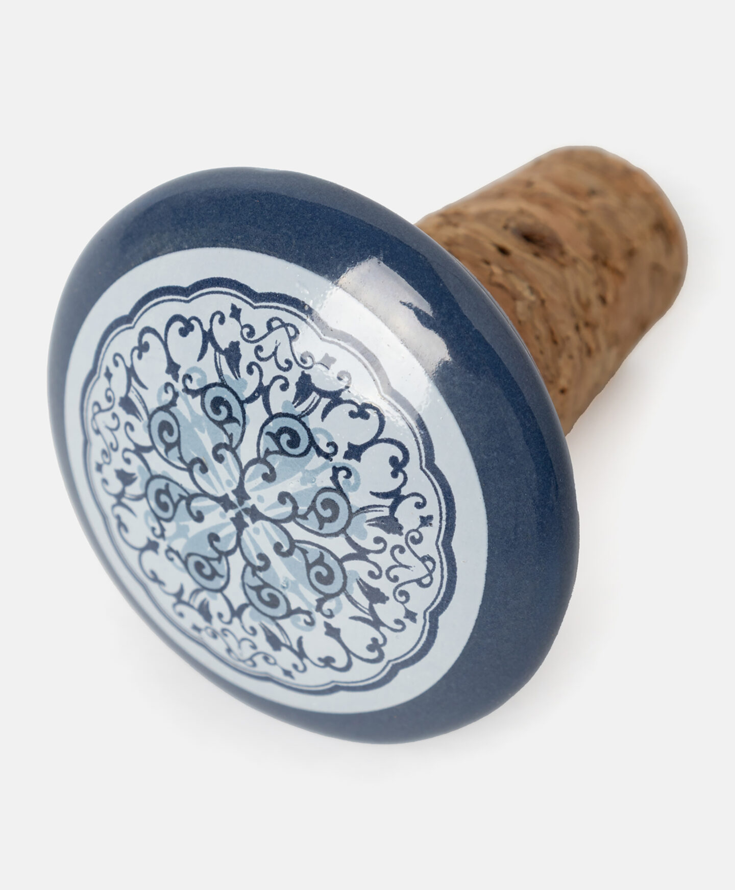 Dopul pentru sticlă, cu model decorativ, este un accesoriu practic în orice bucătărie. Permite închiderea etanșă a sticlelor, protejând conținutul de vărsare, oxidare sau pierderea aromei. Combinația de plută naturală și gresie îl face durabil și ușor de curățat.