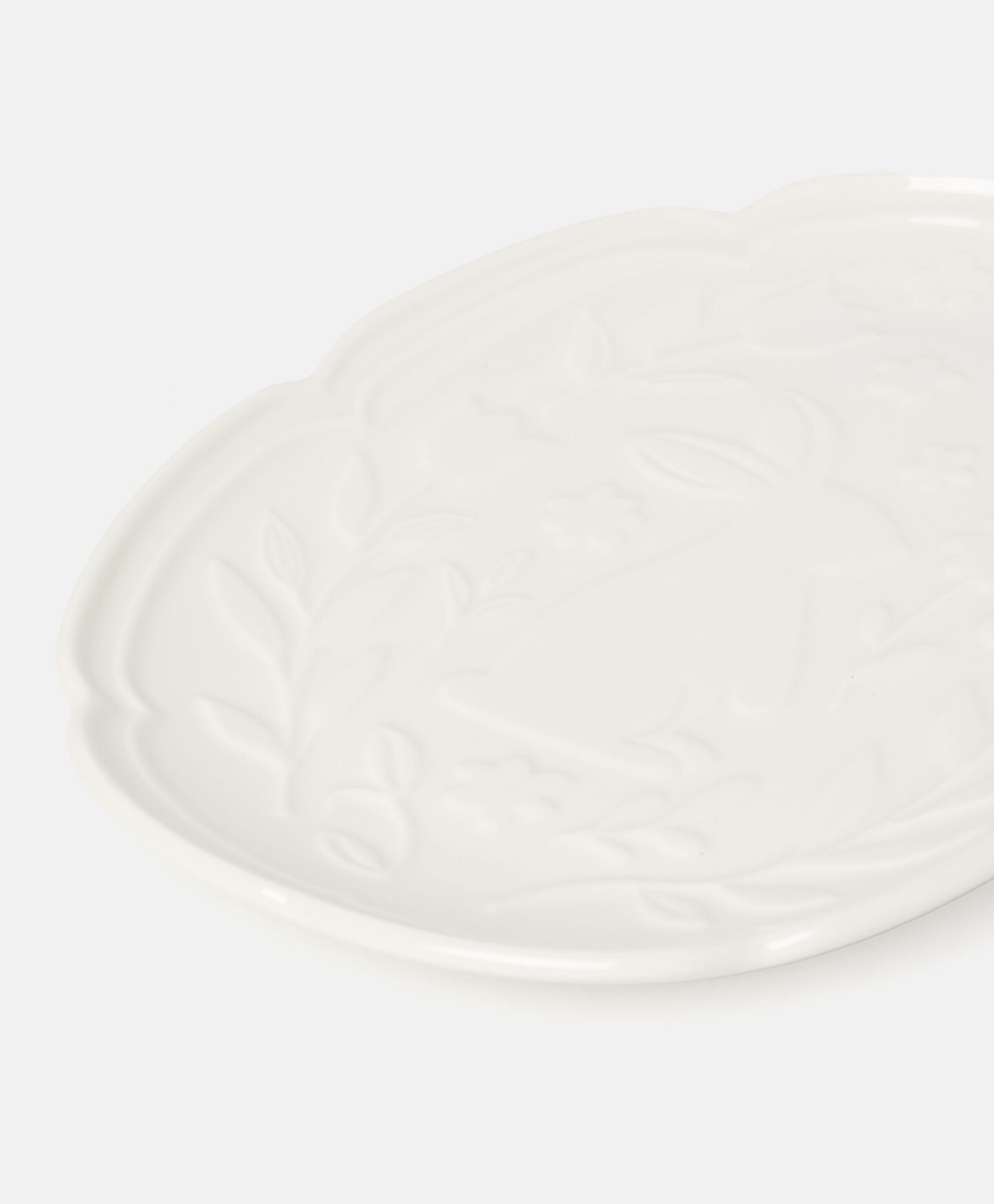 Farfuria albă din porțelan, în formă de ou, aduce o notă festivă oricărei mese. Ideală pentru gustări dulci sau sărate, este realizată din porțelan New Bone China rezistent la zgârieturi și ușor de întreținut. Sunt disponibile două modele.