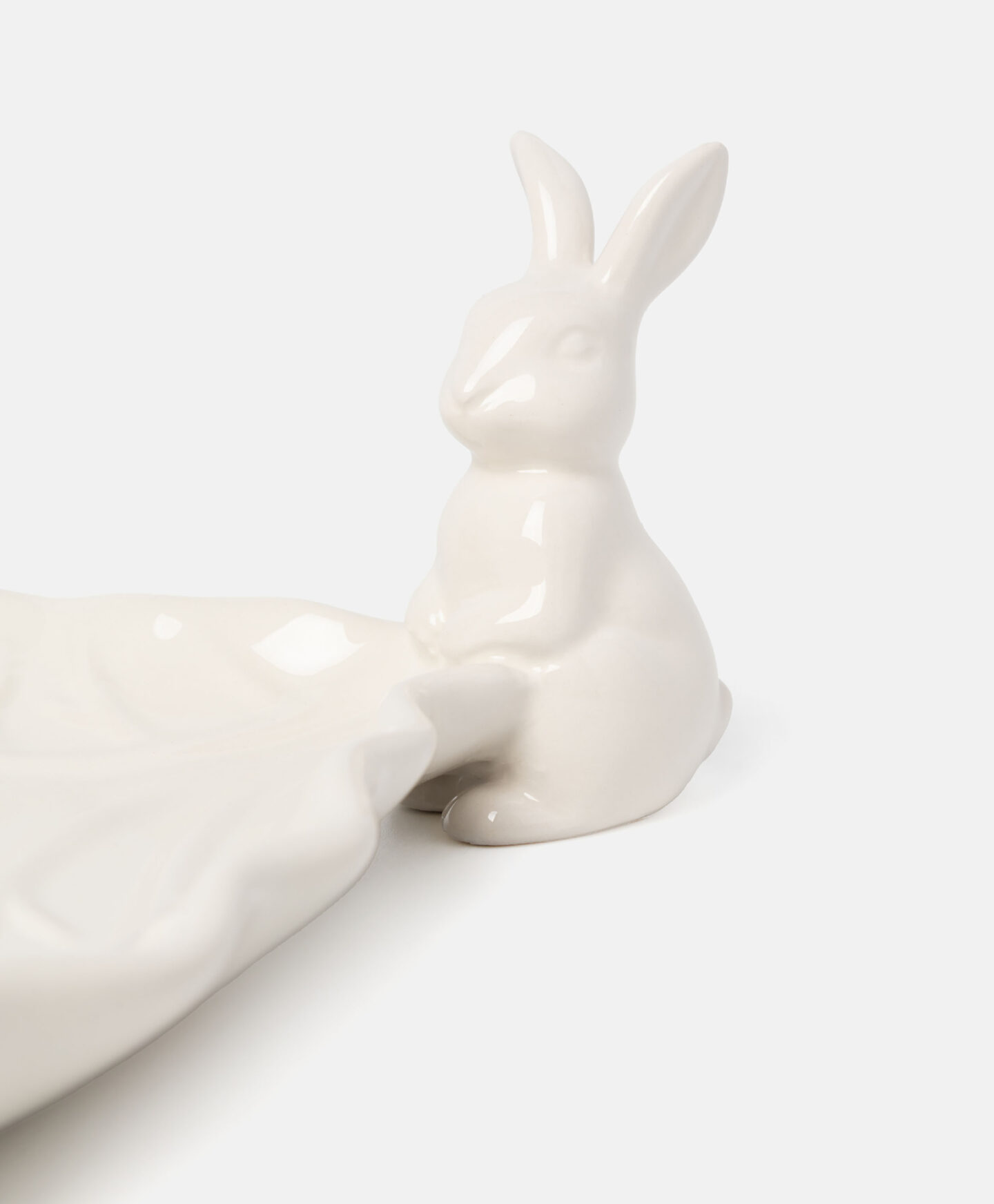 Farfuria în formă de frunză de varză, cu iepuraș 3D, este o piesă deosebită de veselă. Realizată din dolomit rezistent la zgârieturi, este durabilă și ușor de întreținut. Ideală pentru gustări dulci sau sărate, poate deveni și un element decorativ.
