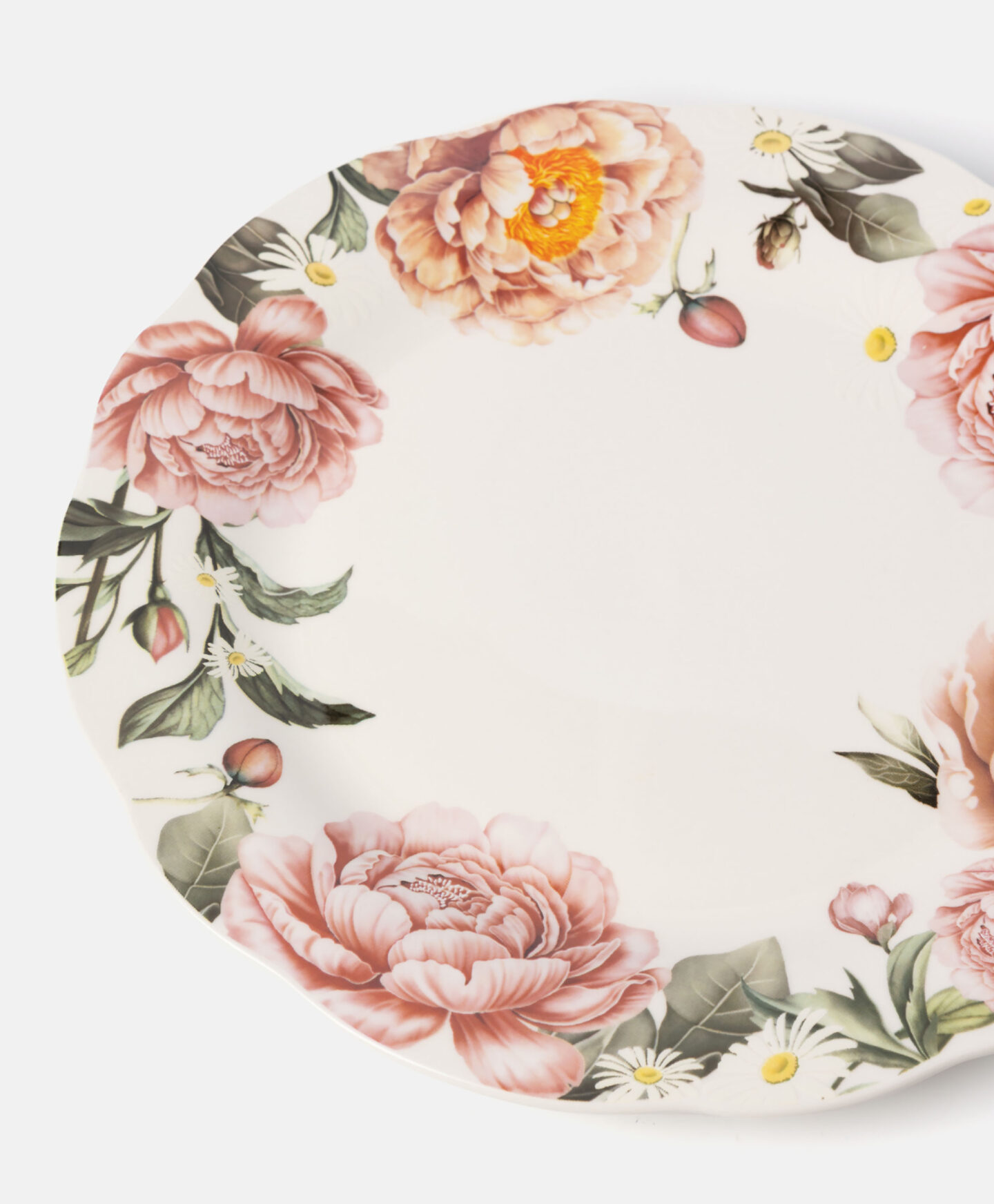 O farfurie pentru cină, cu model floral, impresionează prin design. Este durabilă, cu luciu subtil și aspect alb-crem. Este o alegere excelentă pentru cei care caută veselă elegantă la un preț accesibil. În ofertă găsești boluri și ceainic asortate.