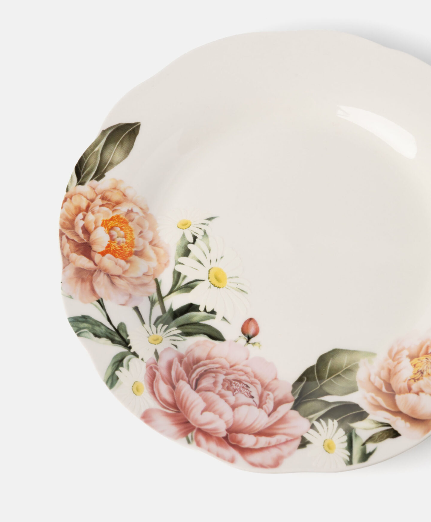 O farfurie pentru desert, cu model floral, impresionează prin design. Păstrează aspectul alb-crem și luciul subtil caracteristice porțelanului tradițional. Este o alegere excelentă pentru cei care caută veselă elegantă la un preț accesibil. În ofertă găsești boluri și ceainic asortate.