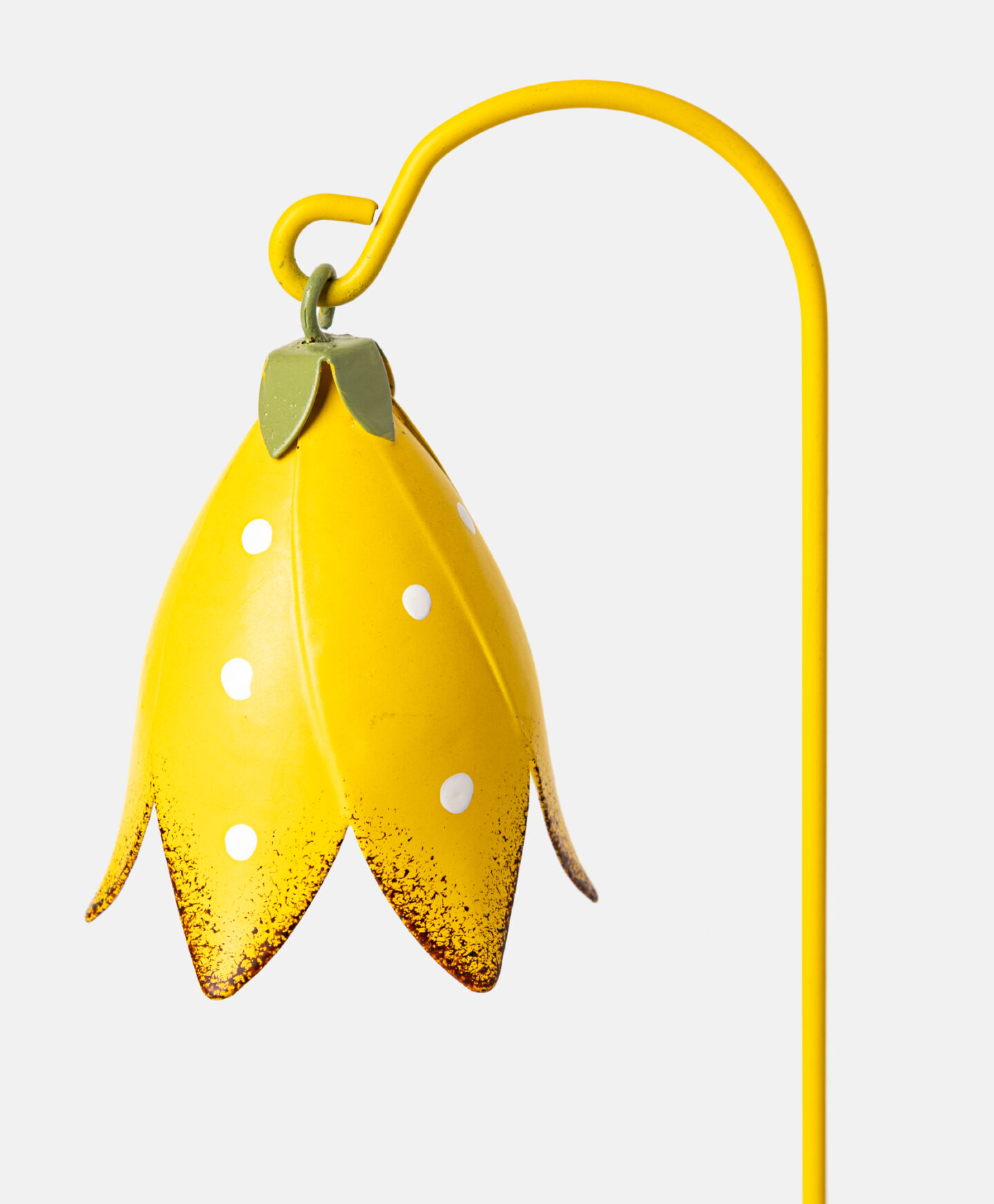Floarea decorativă galbenă din oțel este un decor artistic pentru grădină, care adaugă eleganță oricărui spațiu. Oțelul este durabil și rezistent la coroziune, soare și ploaie. Țărușul permite fixarea rapidă în sol, în ronduri sau ghivece. Nu necesită întreținere sau udare, fiind o soluție practică.