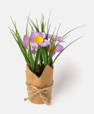 Florile artificiale mov, în ghiveci din hârtie, sunt soluția ideală pentru cei care își doresc o decorațiune durabilă, gata de folosit. Culorile intense și detaliile fidele oferă un aspect proaspăt și plin de viață. Sunt disponibile diverse modele.