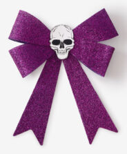 Funda mov cu craniu este un accesoriu original pentru Halloween. Îmbină atmosfera întunecată cu eleganța. Confecționată din material strălucitor, va sclipi frumos în lumina lumânărilor. Este ideală pentru decorarea ușilor, perdelelor sau a mesei. Sunt disponibile și alte culori.