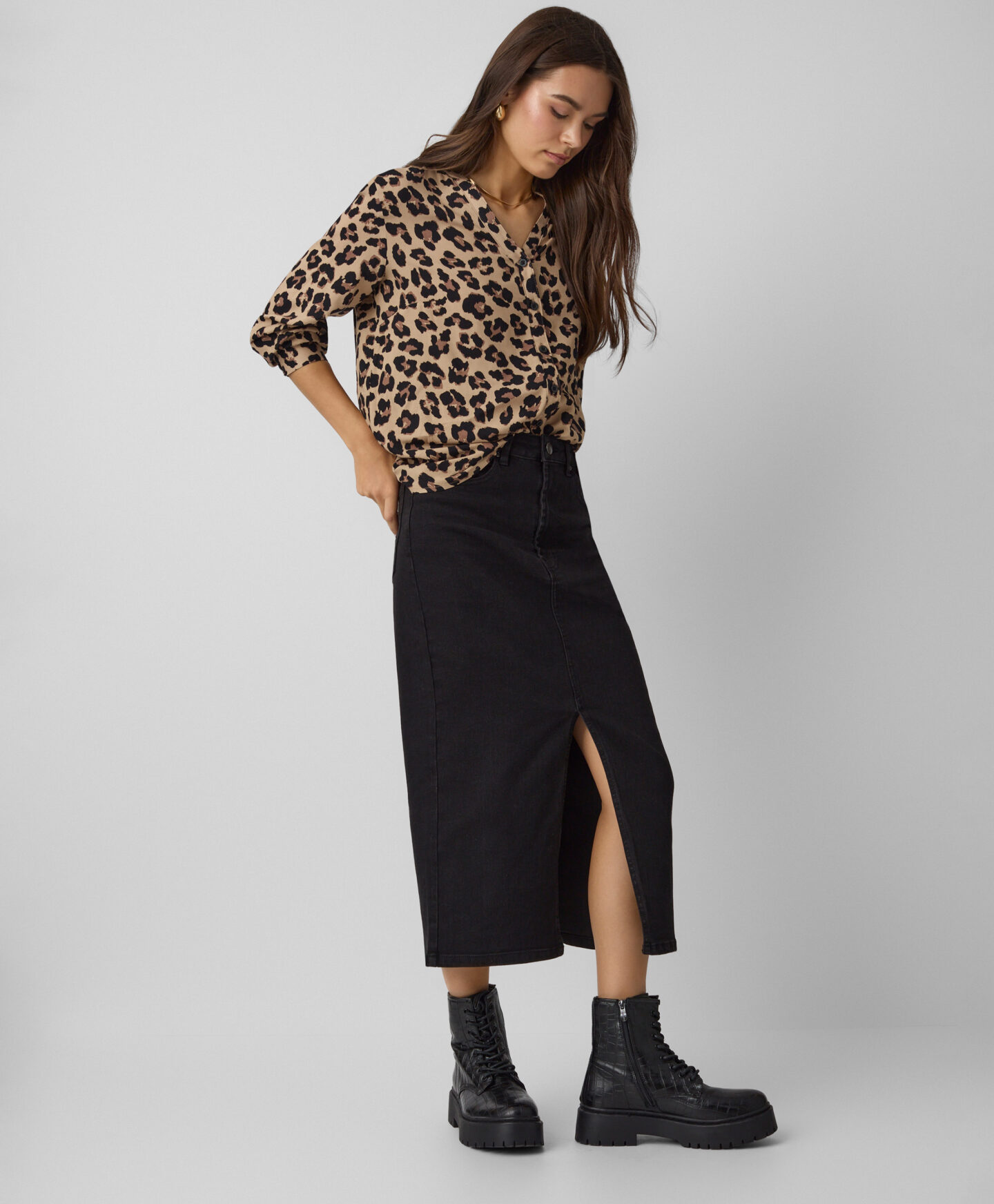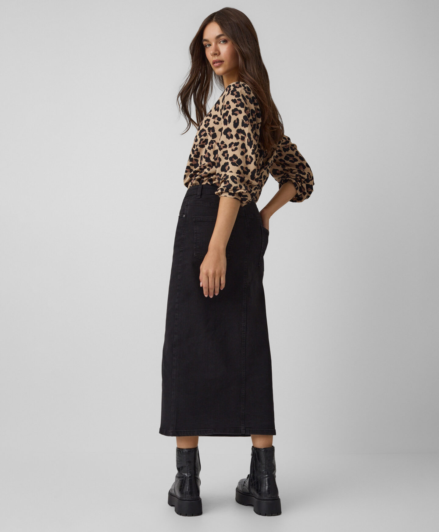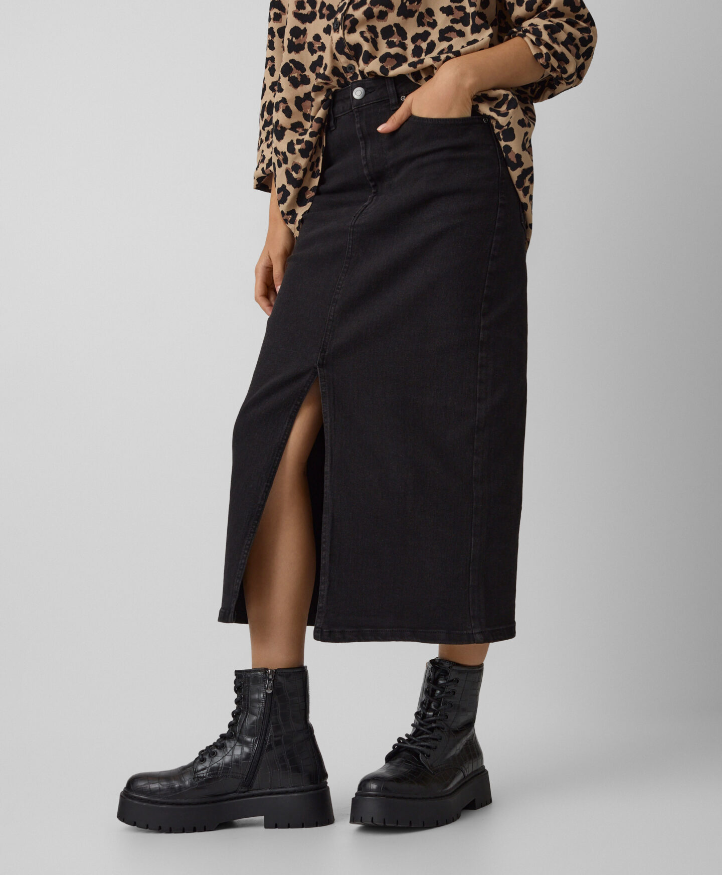 Fusta denim pentru femei, din bumbac, se potrivește perfect atât cu încălțăminte sport, cât și cu cizme sau botine. Lungimea midi este foarte versatilă și îți permite să creezi numeroase ținute reușite, ideale pentru birou, pentru facultate sau pentru o plimbare de toamnă în aer liber.