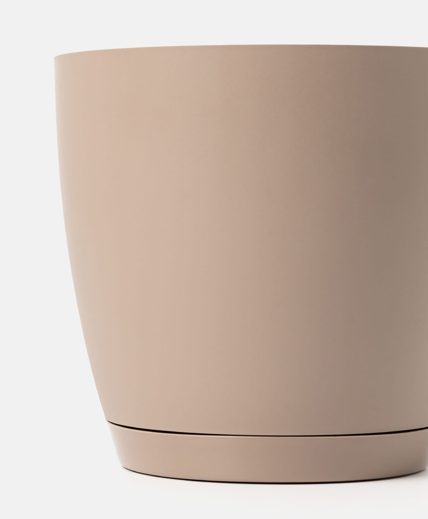 Ghiveciul mat bej cu farfurie este un element esențial pentru orice iubitor de plante. Diametrul de 19 cm este ideal pentru plante de dimensiuni medii, precum ficus, monstera sau dracaena. Finisajul mat oferă un aspect modern și minimalist, potrivit pentru orice stil de amenajare. Este durabil, ușor și simplu de curățat. Sunt disponibile diverse modele.