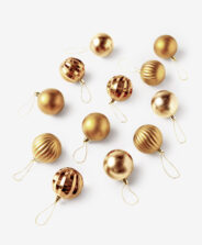 Globurile din plastic auriu adaugă un luciu cald decorațiunilor. Suprafața ușor oglindită reflectă flacăra lumânărilor și lumina instalației, creând o aură plăcută în jurul bradului. Se potrivesc de minune cu ornamentele roșii și verzi.