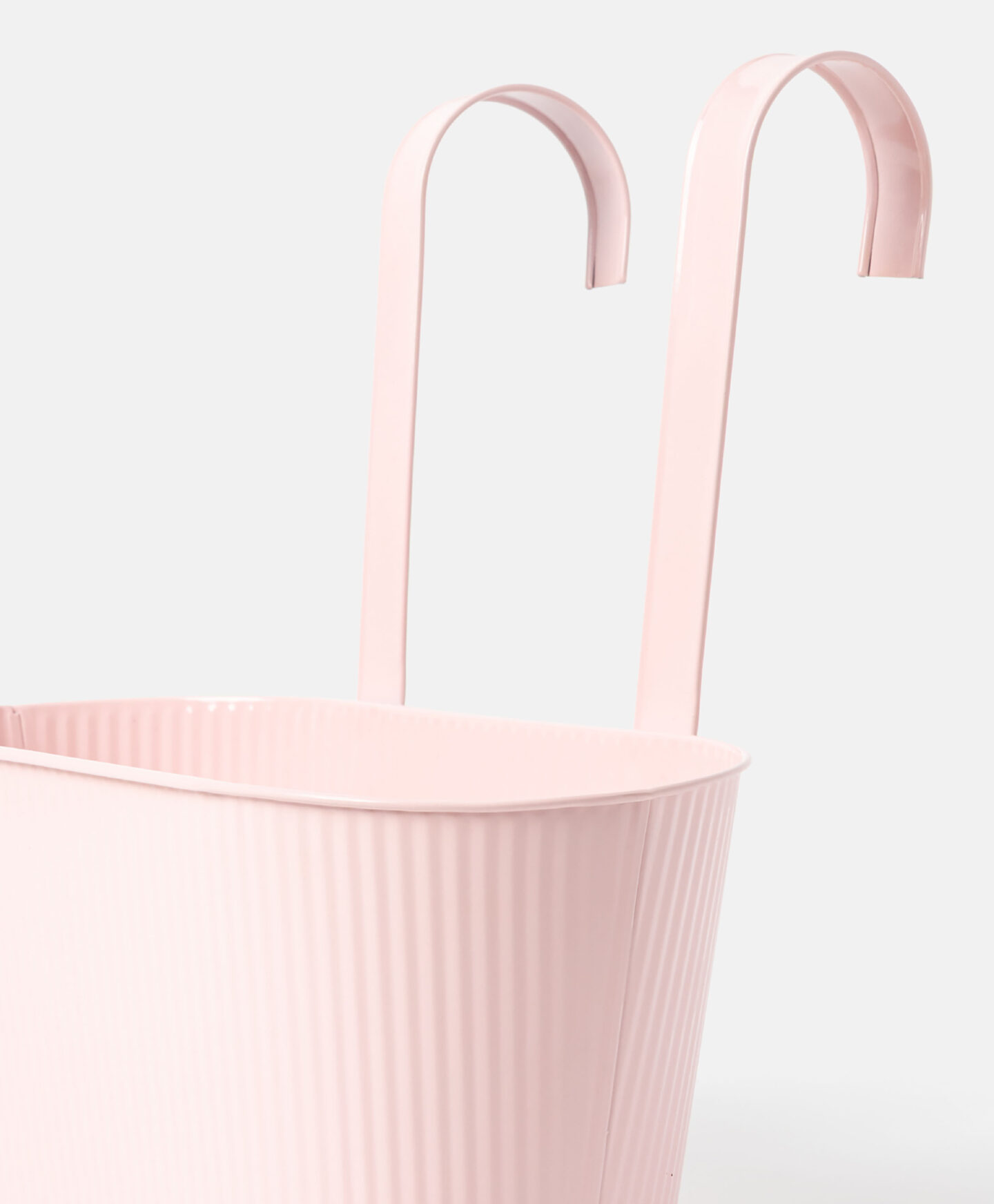 Husa suspendată alungită ghiveci roz cu pereți striați atrage atenția prin designul de primăvară. Cârligele practice permit montarea pe balustradă sau perete, optimizând spațiul disponibil. Sunt disponibile diverse modele.