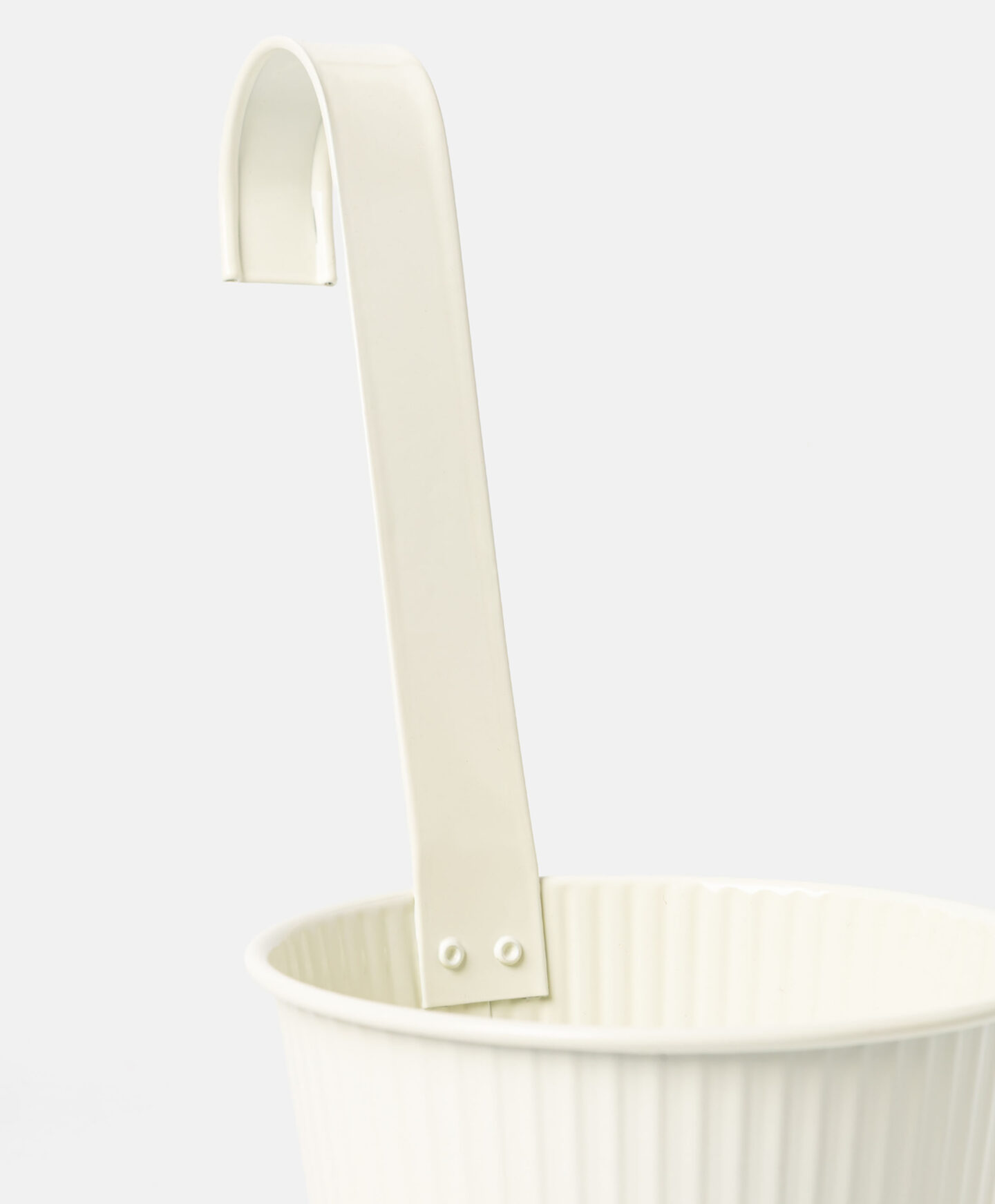Husa suspendată ghiveci alb cu pereți striați atrage atenția prin designul de primăvară. Cârligul practic permite agățarea pe balustradă, sub tavan sau pe un perete din lemn, valorificând spațiul disponibil. Construcția metalică este durabilă și rezistentă la coroziune și condiții meteo. Sunt disponibile diverse modele.