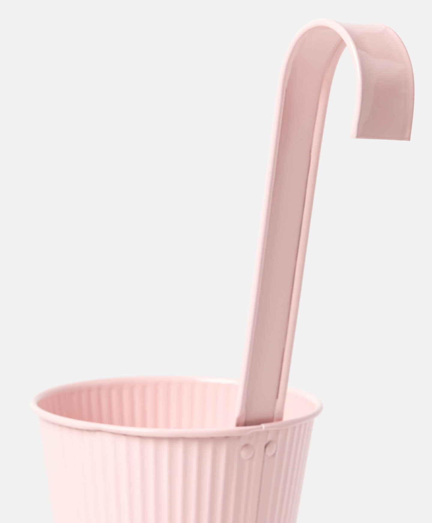Husa suspendată ghiveci roz cu pereți striați atrage atenția prin designul de primăvară. Cârligul practic permite agățarea pe balustradă, sub tavan sau pe un perete din lemn, valorificând spațiul disponibil. Construcția metalică este durabilă și rezistentă la coroziune și condiții meteo. Sunt disponibile diverse modele.