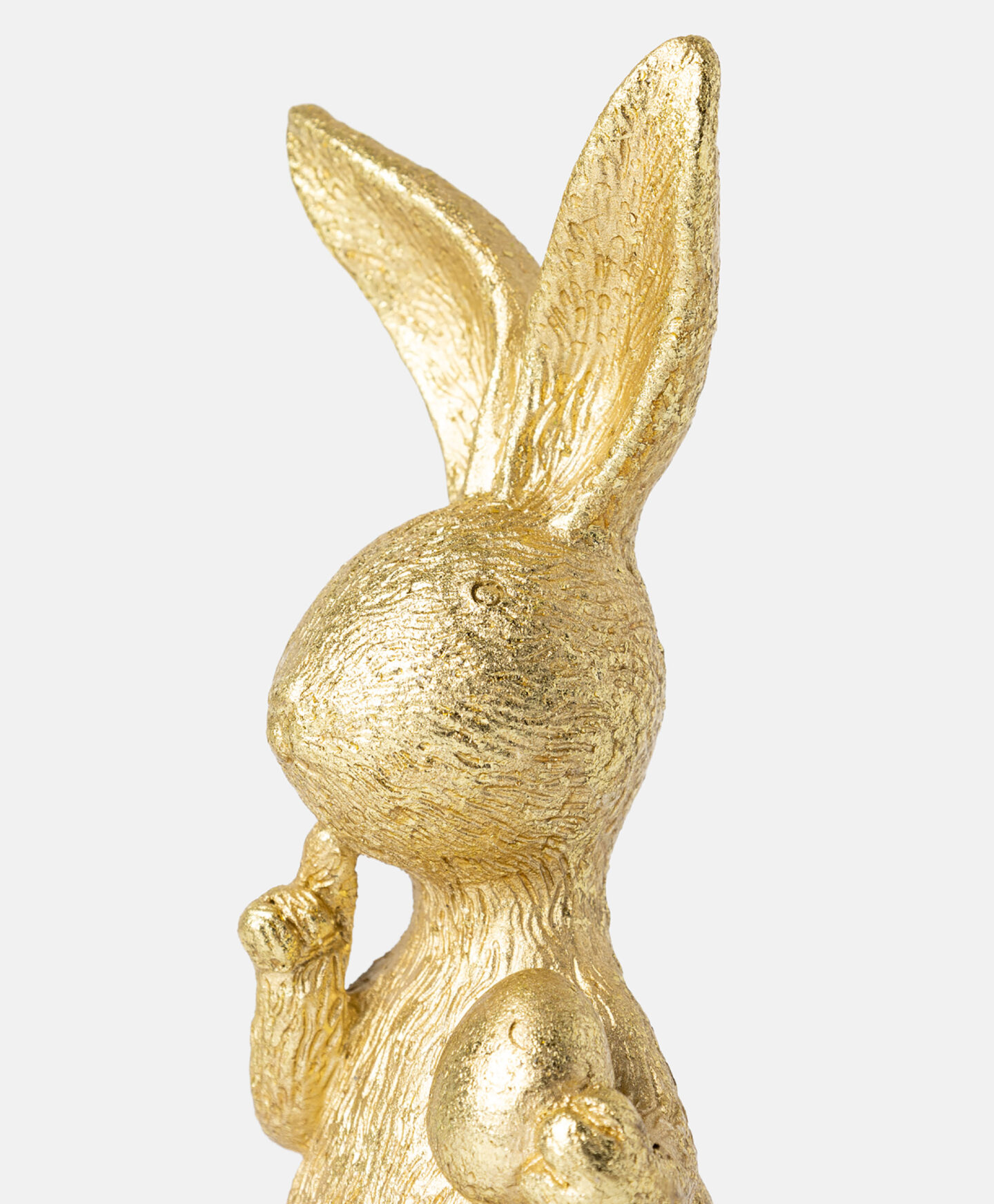 Iepurașul auriu din polirășină, cu ou de Paște, atrage atenția prin eleganța sa discretă. Polirășina este un material ușor și durabil, rezistent în timp și la condițiile meteo, ceea ce garantează calitatea îndelungată a figurinei. Este alegerea ideală pentru cei care caută accente delicate și de bun gust. Sunt disponibile diverse modele.