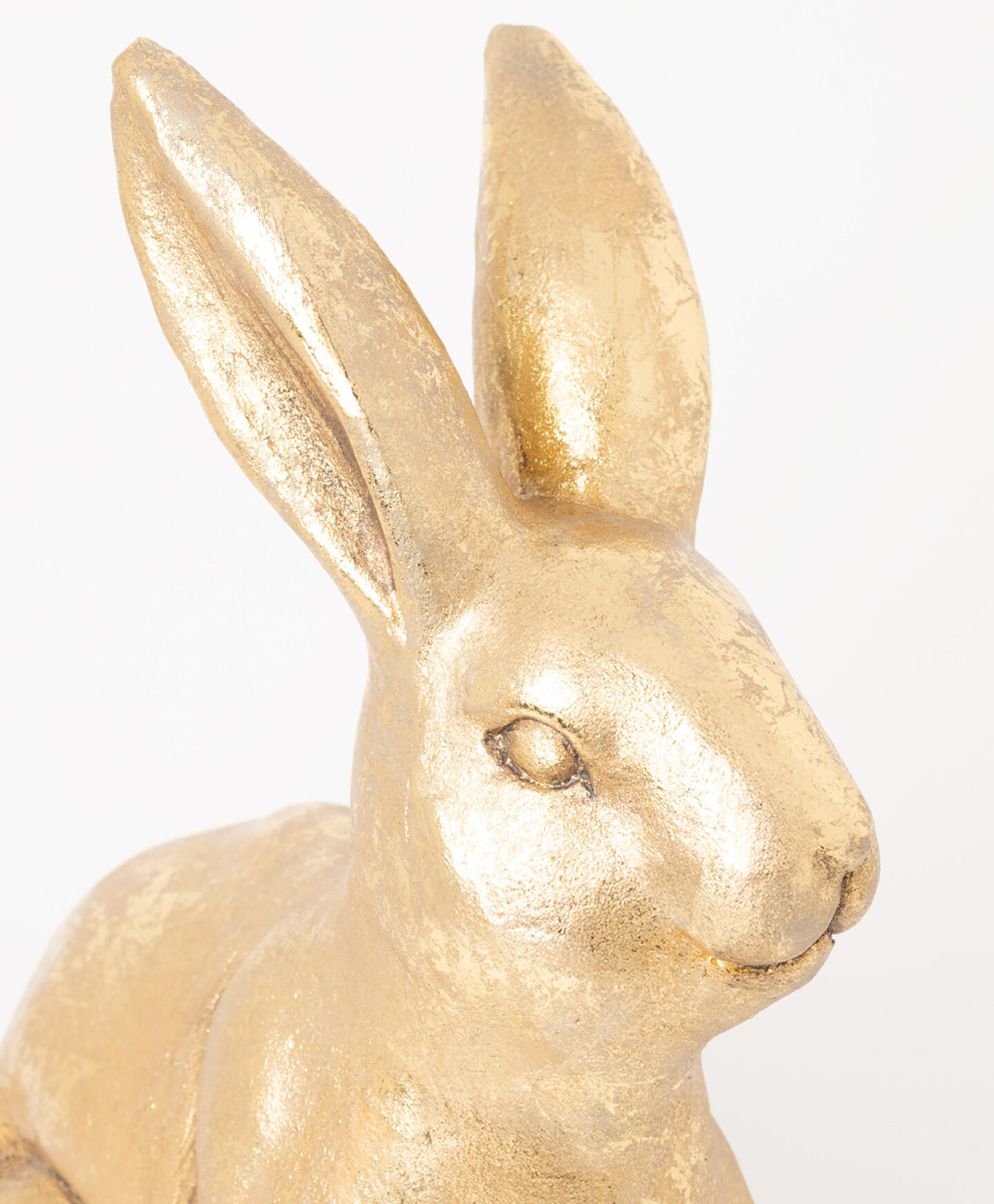 Iepurașul auriu, mărimea L, este o decorațiune impresionantă care atrage privirea. Culoarea aurie se evidențiază, iar finisajul mat arată excepțional de elegant. Este potrivit atât pentru interior, cât și pentru exterior și poate fi un cadou inspirat pentru iubitorii de obiecte frumoase.