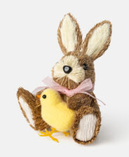 Iepurașul din paie cu puișor este o decorațiune fermecătoare, realizată parțial din materiale naturale, care se potrivește minunat atât în interioare rustice, cât și moderne. Iepurașul este ușor, durabil și complet sigur pentru copii și animale de companie. De asemenea, este un cadou frumos pentru oricine iubește accentele tematice de Paște.