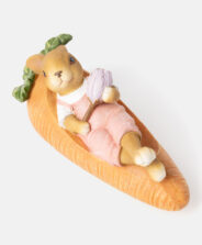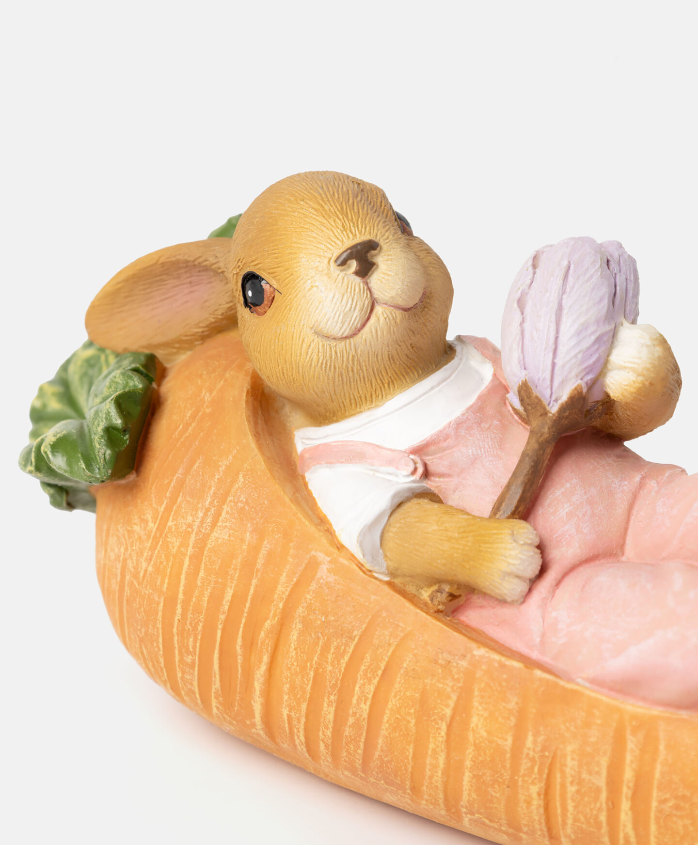 Iepurașul decorativ pe un morcov este disponibil în diverse modele. Realizat din polirășină durabilă, rezistentă la intemperii, este perfect pentru decorarea atât a interiorului, cât și a exteriorului. Îl poți așeza pe balcon, pe terasă sau printre straturile de flori din grădină.